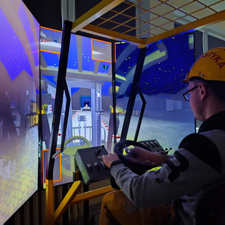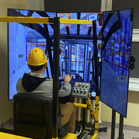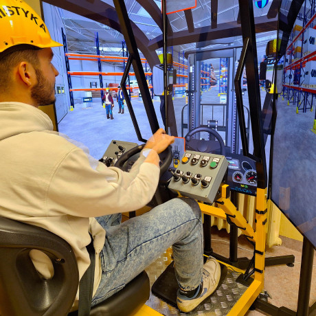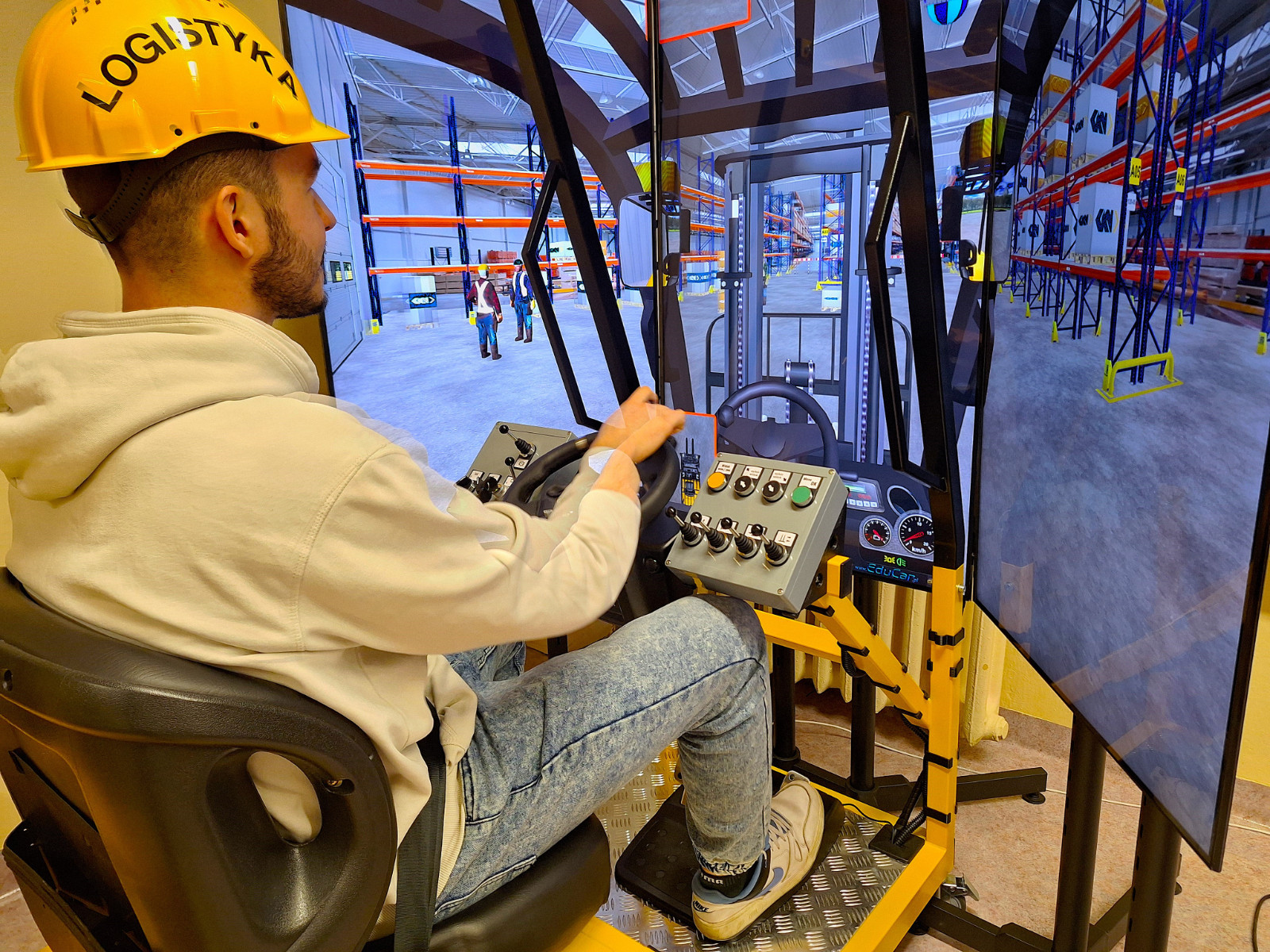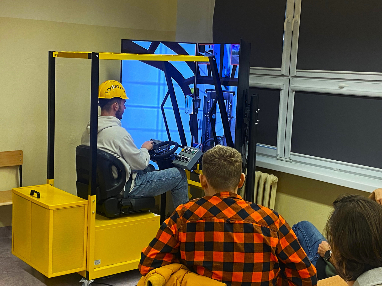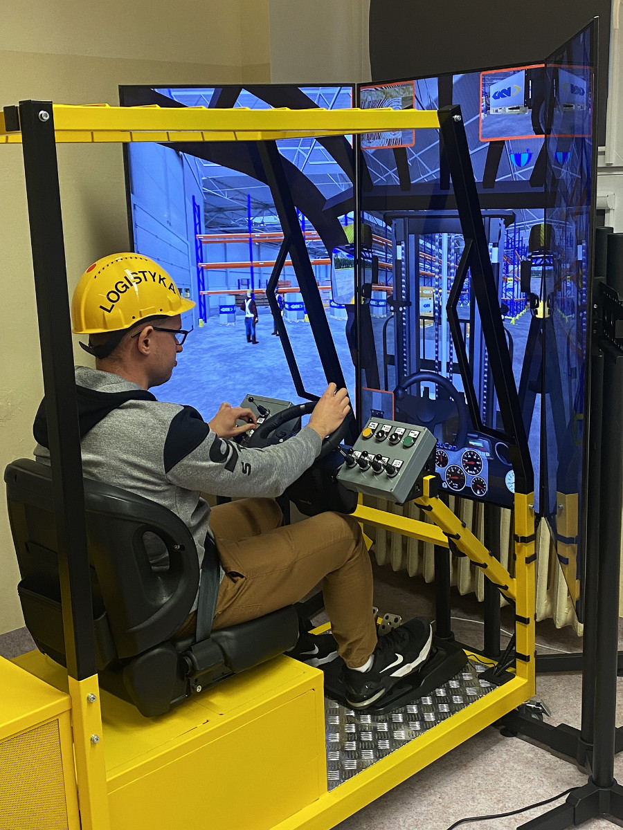 Naśladuje ruch, obsługę i kontrolę tego prawdziwego, zarówno spalinowego, jak i elektrycznego, a informację o każdym błędzie wyświetli na ekranie. Symulator wózków widłowych, bo o nim mowa, mają od niedawna do dyspozycji studenci kierunków logistycznych i technicznych.