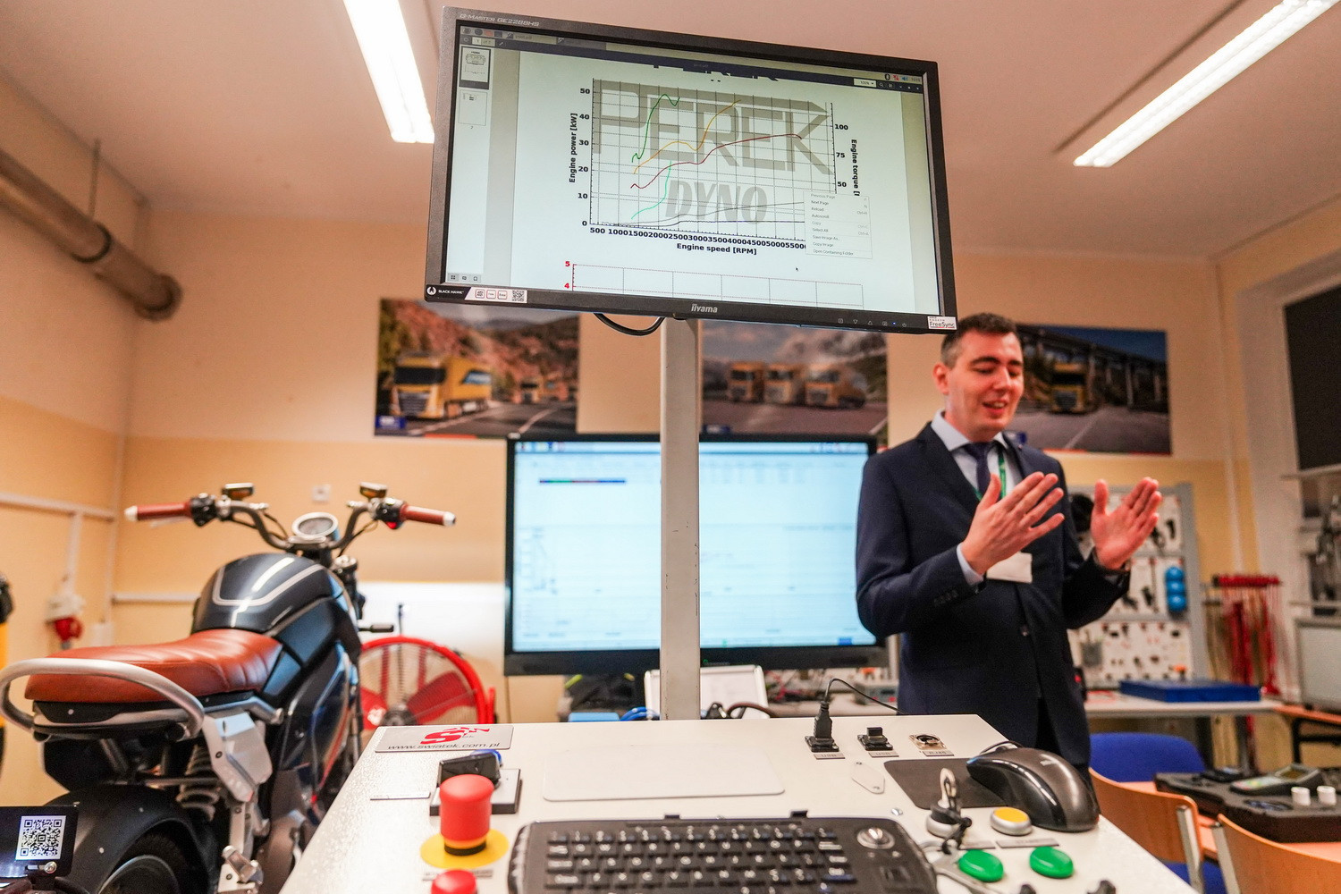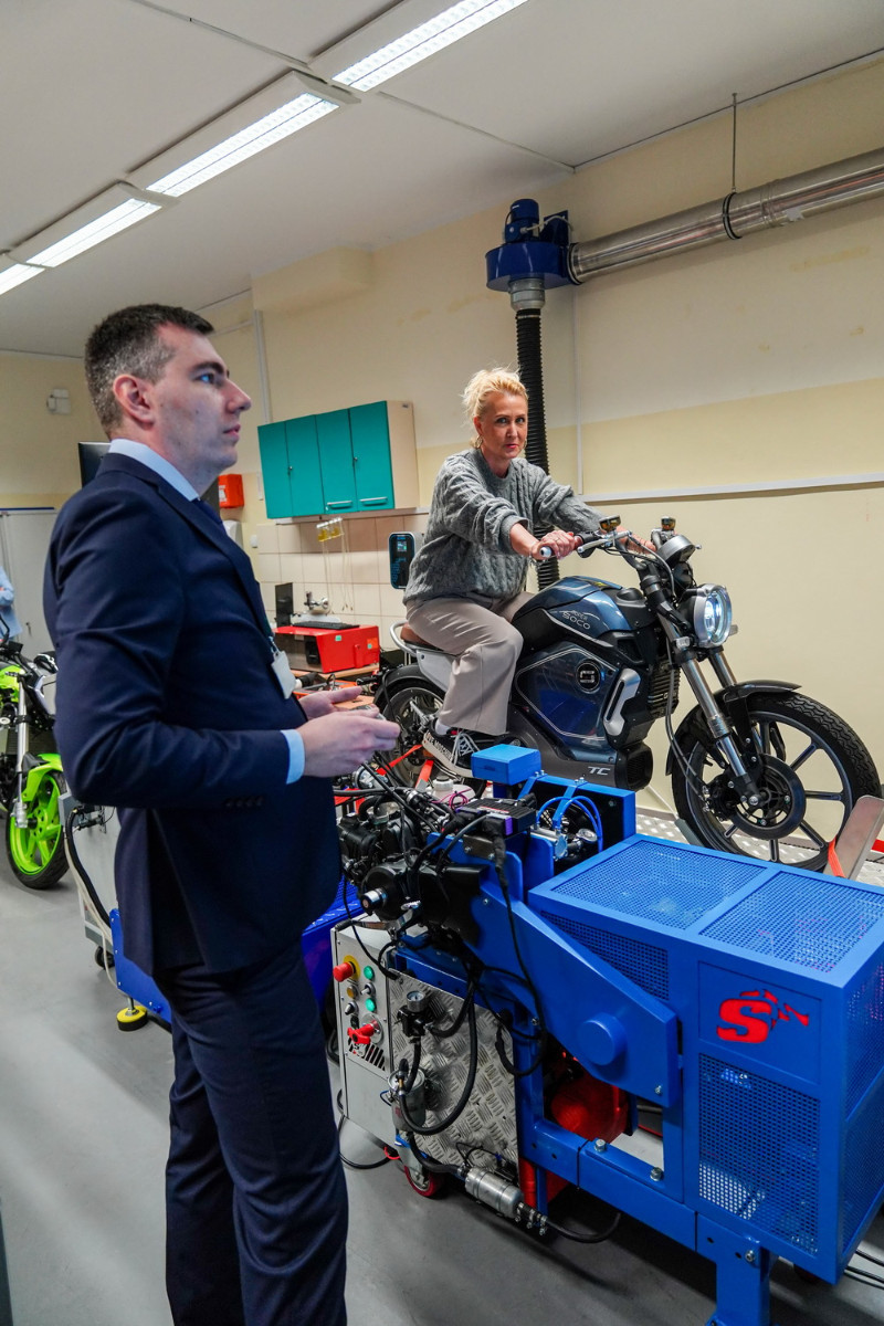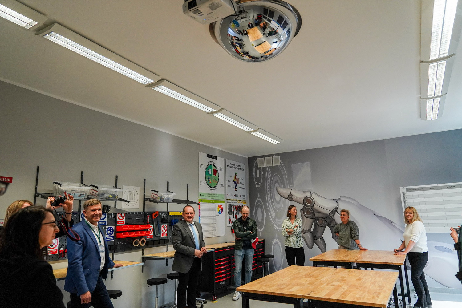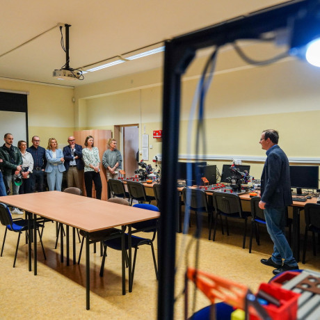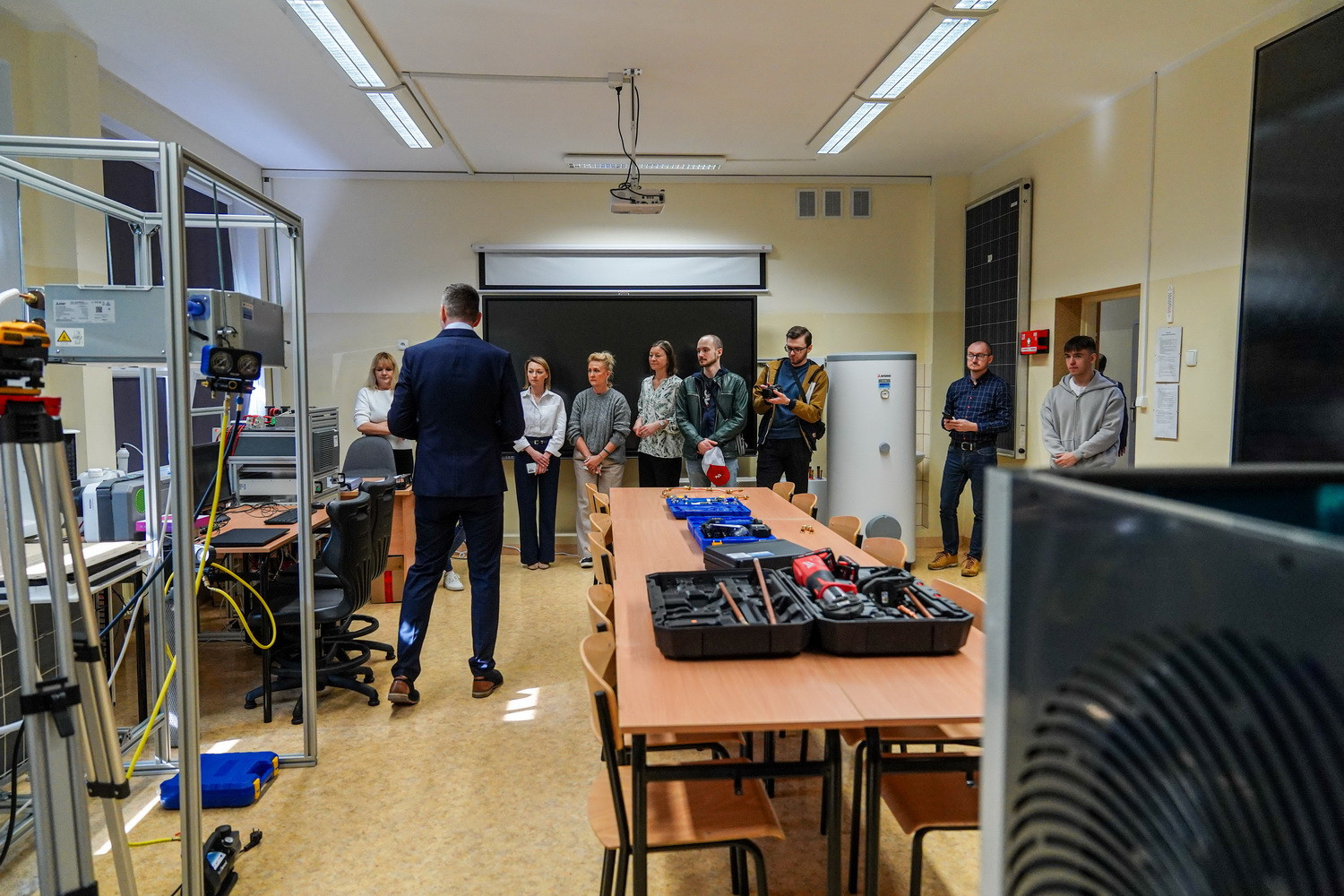 Ostatnie zakupy, szczególnie do laboratoriów, z których korzystają studenci kierunków technicznych prowadzonych przez Wydział Nauk Ekonomicznych i Technicznych, wyniosły ponad 3 mln złotych. To nowoczesny sprzęt współfinansowany przez Unię Europejską ze środków Funduszu na rzecz Sprawiedliwej Transformacji w ramach programu „Fundusze Europejskie dla Wielkopolski 2021-2027”, a także z budżetu państwa w ramach projektów: „Doposażenie istniejących pracowni i laboratoriów w nowoczesny sprzęt specjalistyczny w ANS w Koninie” oraz „Inicjatywa wsparcia dążenia do doskonałości”. Goście odwiedzili m.in. laboratoria mechaniki płynów i termodynamiki (szacunkowa wartość wyposażenia 188 tys. zł), odnawialnych źródeł energii (296 tys. zł), energetyki przemysłowej i logistyki (285 tys. zł), przetwórstwa tworzyw sztucznych (110 tys. zł), robotyzacji (259 tys. zł) diagnostyki, napędów i elektromobilności (450 tys. zł), inżynierii wirtualnej (140 tys. zł).