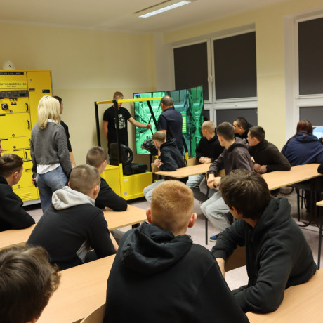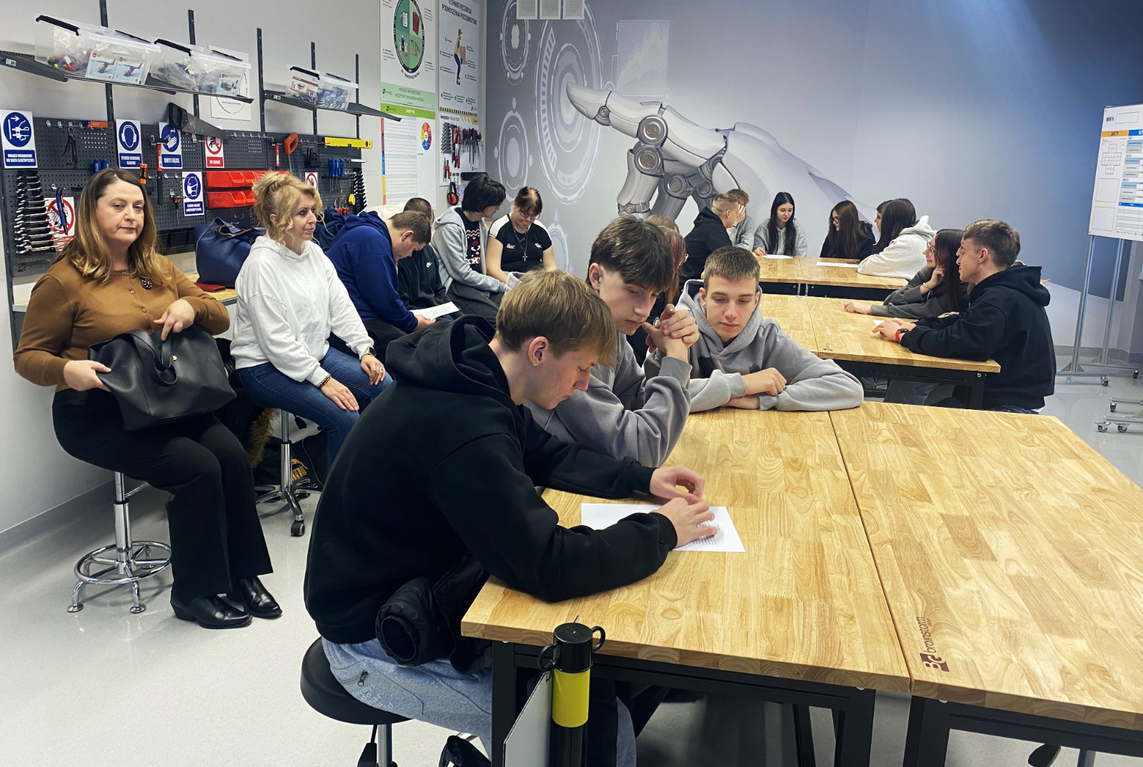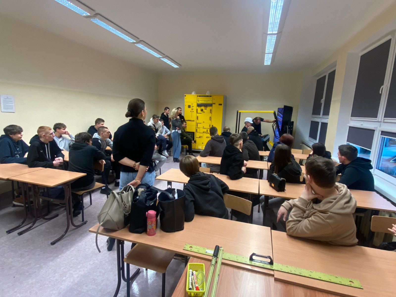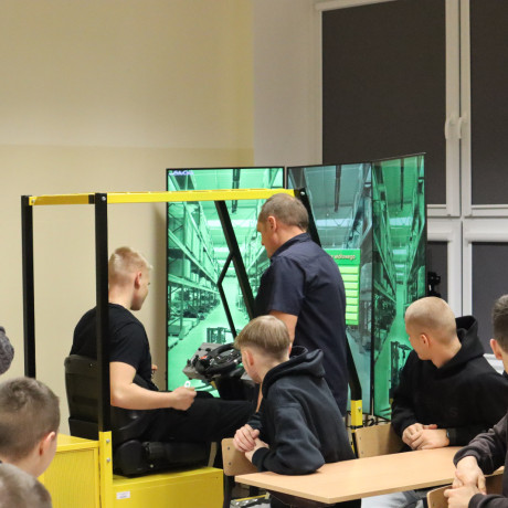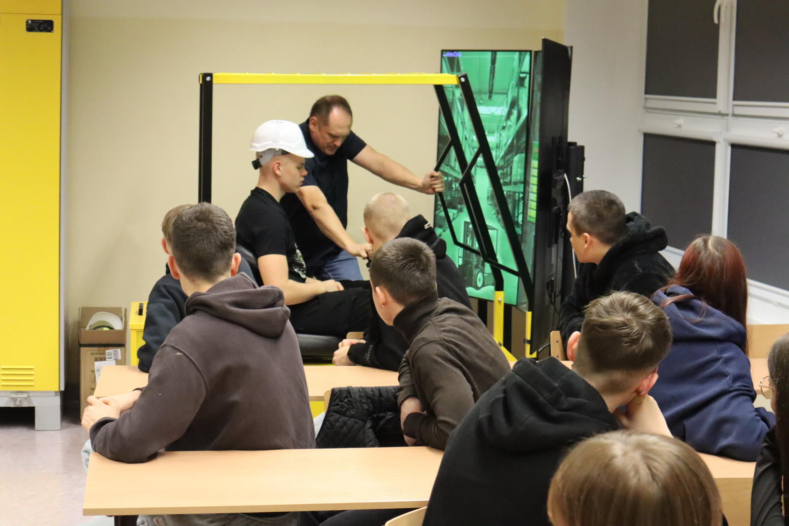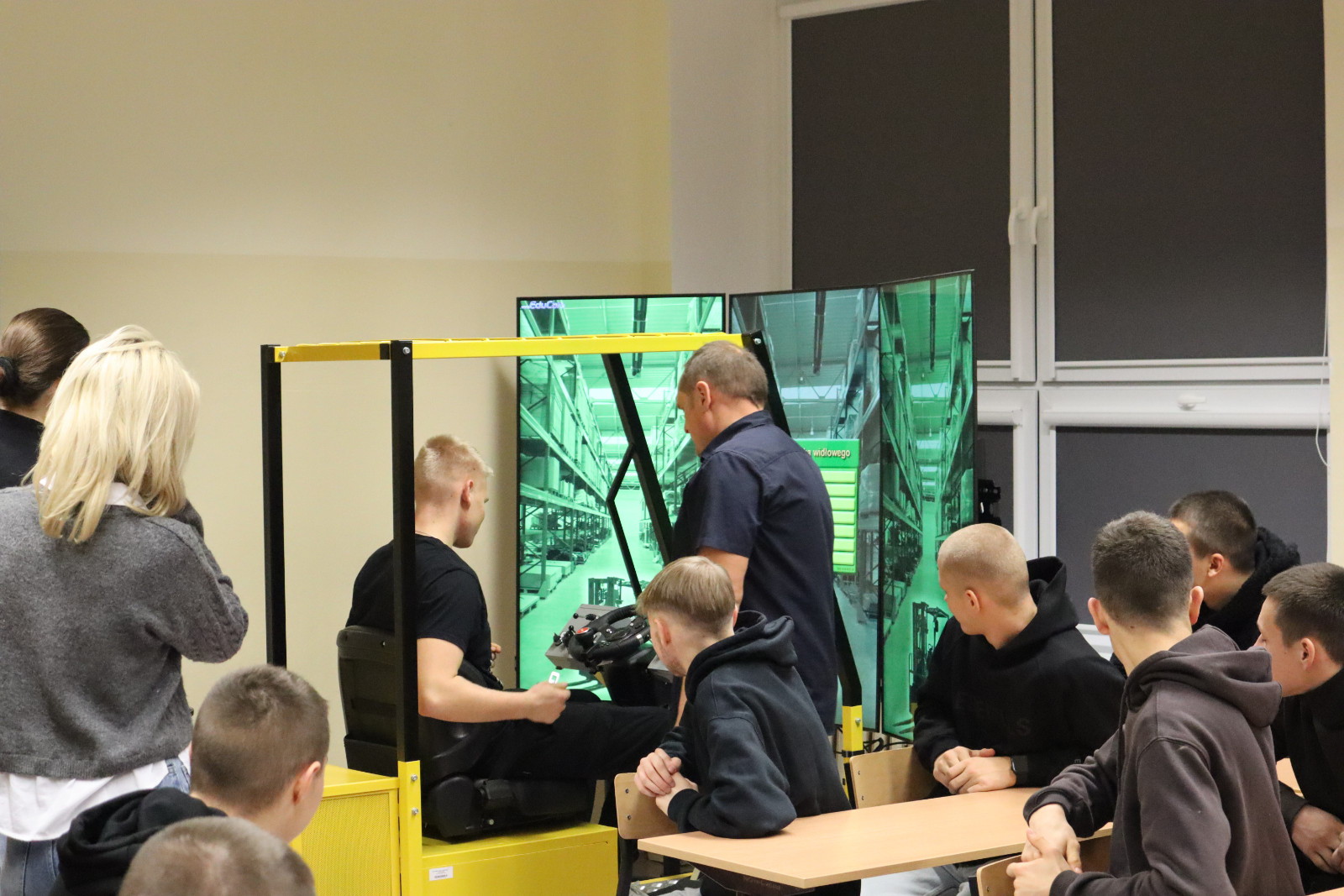 Uczniowie z Sompolna odwiedzili nasze zaplecze logistyczne, by poznać tajniki lean manufacturing oraz spróbować sił na symulatorze wózka widłowego.