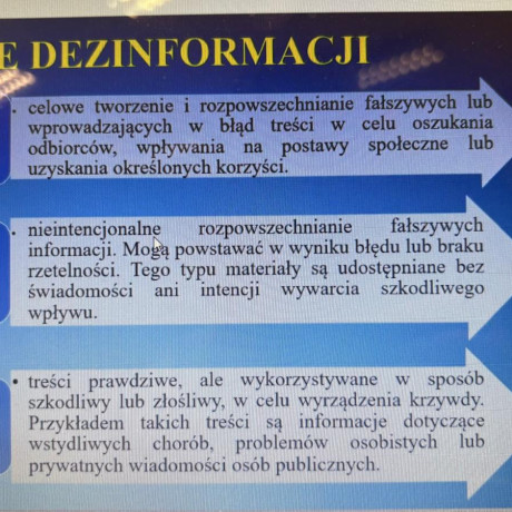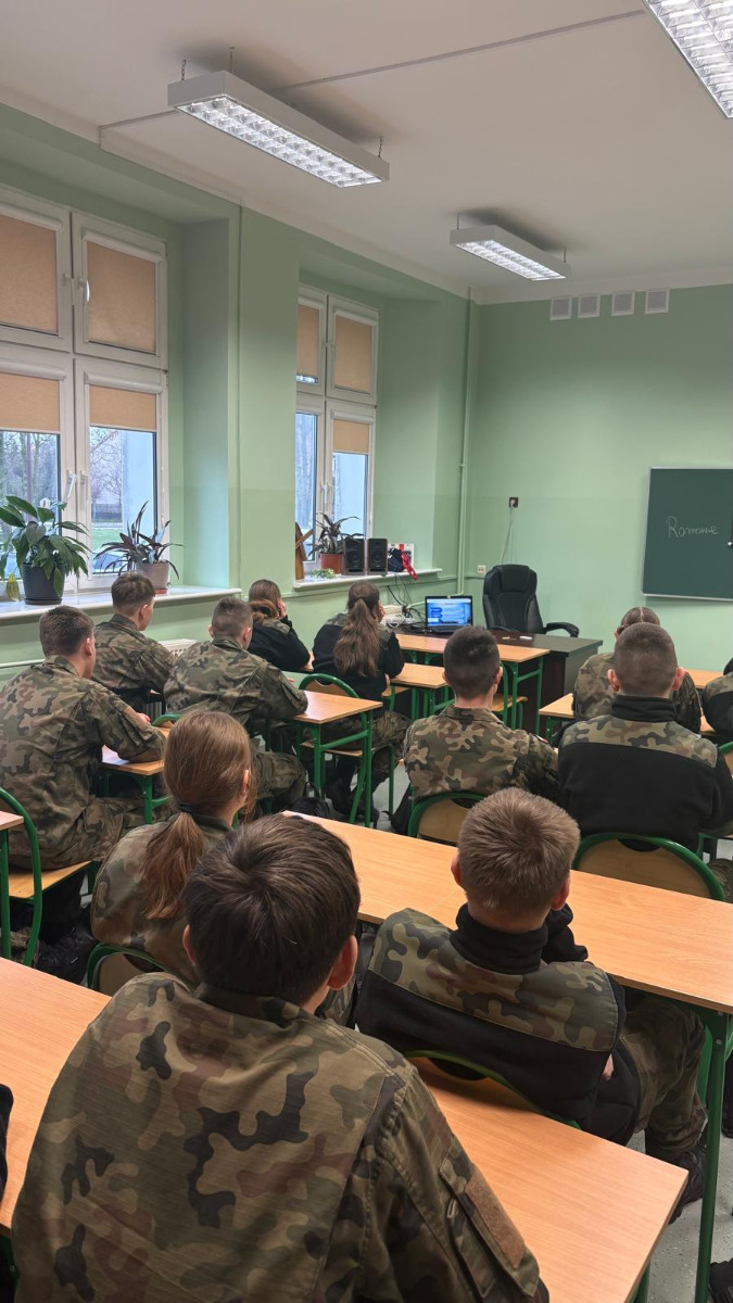 Tematem wykładu była „Dezinformacja – ujęcie teoretyczne, przykłady technik manipulacyjnych w mediach”. Uczniowie poznali podstawowe definicje i cechy dezinformacji oraz jej cele i wielowymiarowy charakter. Prowadząca omówiła zarówno świadome działania manipulacyjne, jak i niezamierzone zniekształcenia przekazu, prezentując historyczne przykłady manipulacji — od narracji antycznych, przez strategie opisane przez Sun Tzu, aż po propagandę XX wieku.