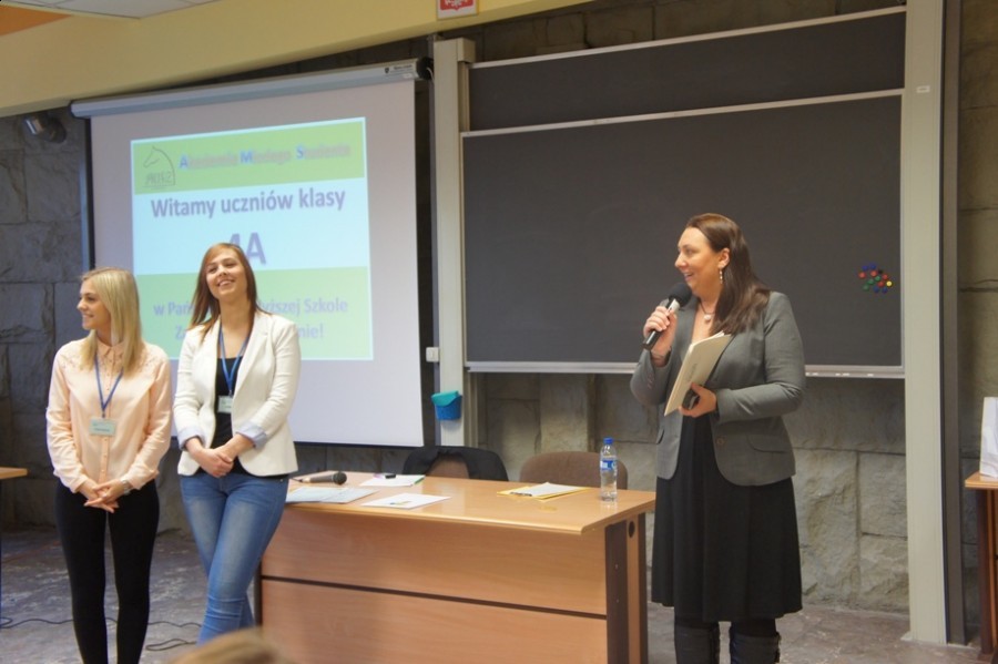 Pierwsze zajęcia w ramach Akademii Młodego Studenta odbyły się 3 grudnia 2013 r. Uczestniczyli w nich uczniowie klasy 4a ze Szkoły Podstawowej nr 1 im. Komisji Edukacji Narodowej w Słupcy. Dzieci oraz ich opiekunów w murach uczelni powitała dr Joanna Chojnacka-Gärtner, prorektor ds. promocji i rozwoju. Następnie młodzi studenci rozpoczęli swoje pierwsze w życiu zajęcia w szkole wyższej, a były to zajęcia z języka niemieckiego.