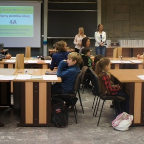 Dzieci z klasy 4a to prawdziwe „zdolniachy”. Od tego roku szkolonego rozpoczęły w szkole naukę języka niemieckiego (jedna godzina tygodniowo). Studenci III roku filologii germańskiej z Katedry Filologii PWSZ w Koninie przygotowali dla nich specjalny program edukacyjny, aby mogli poznawać ten język przez zabawę. Podczas pierwszej lekcji zatytułowanej Ich bin Marco und ich bin 10 Jahre alt uczyli się liczyć po niemiecku od jednego do dwunastu oraz podstawowych zwrotów potrzebnych do przedstawiania się. Podczas trzech kolejnych lekcji dzieci poznawały niemieckie nazwy kolorów, części ciała oraz produktów spożywczych i dobrze się przy tym bawiły. Było dużo konkursów, rysowania, śpiewania oraz zabaw w języku niemieckim.