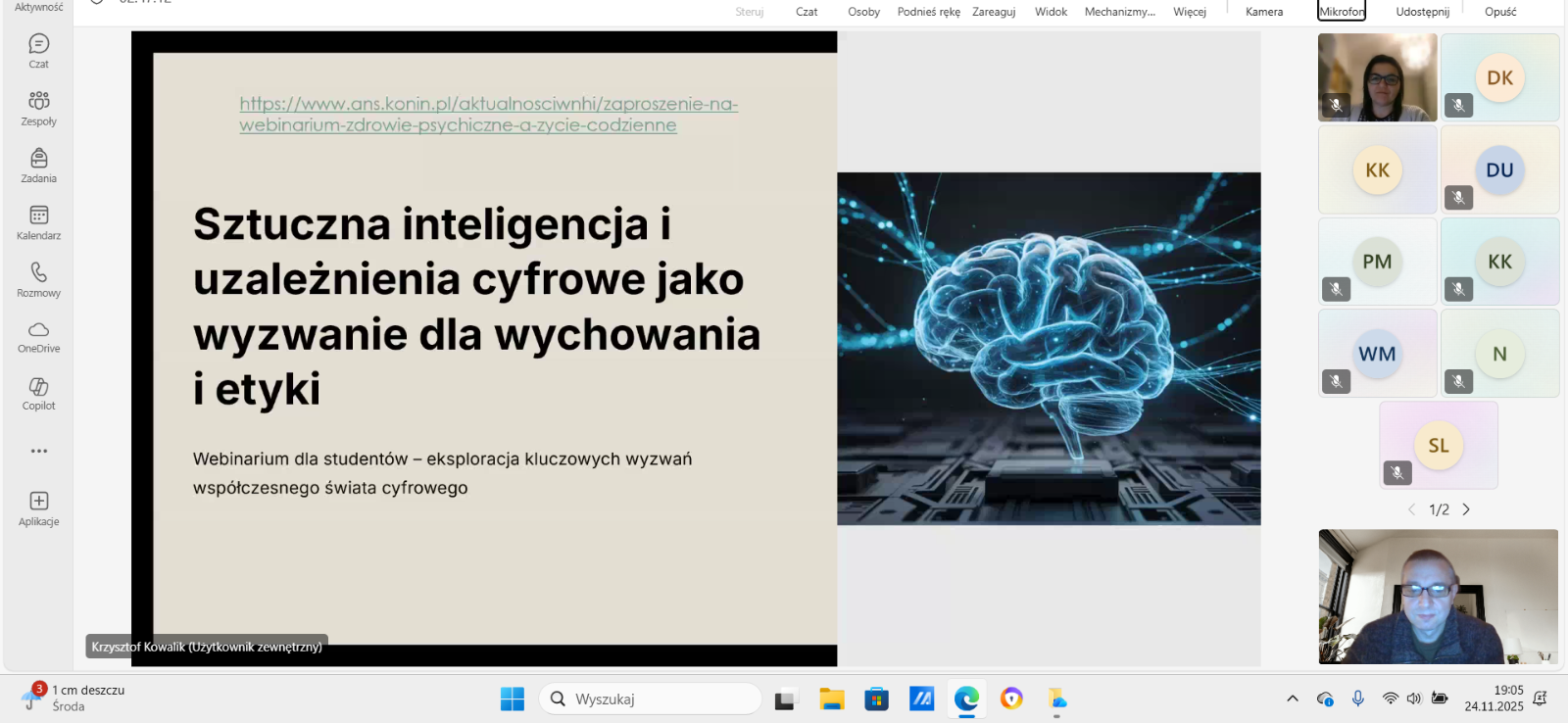 „Zdrowie psychiczne a życie codzienne” to hasło webinarium naukowo-dydaktycznego, które przygotował dr hab. Jakub Bartoszewski, prof. ANS w Koninie, w partnerstwie ze studentką pedagogiki Dagmarą Uniejewską.