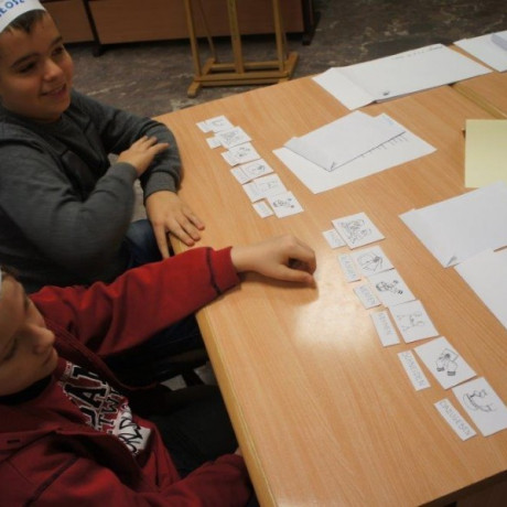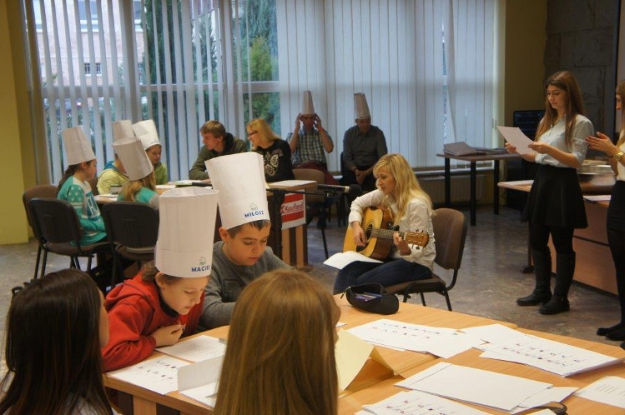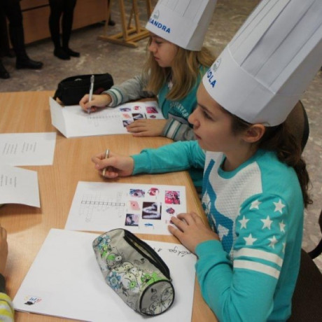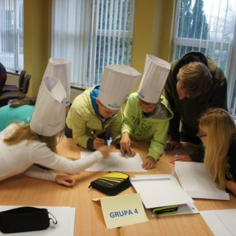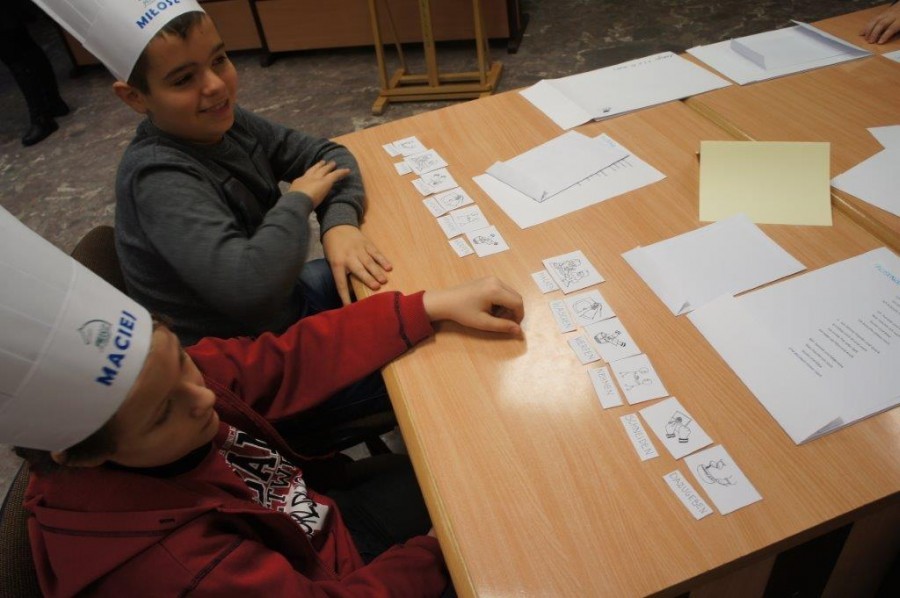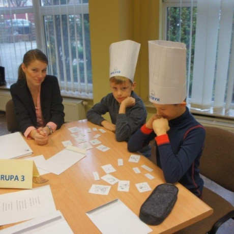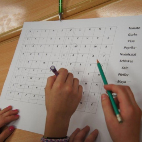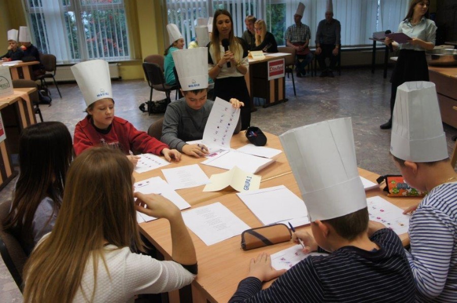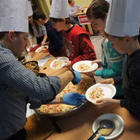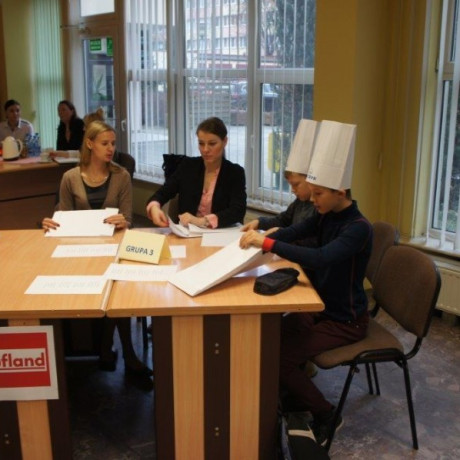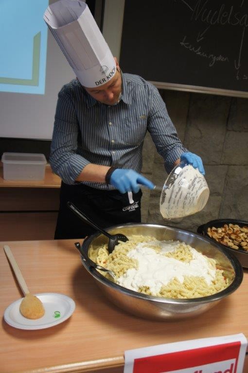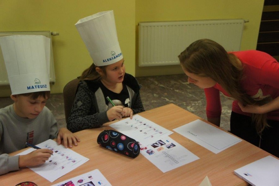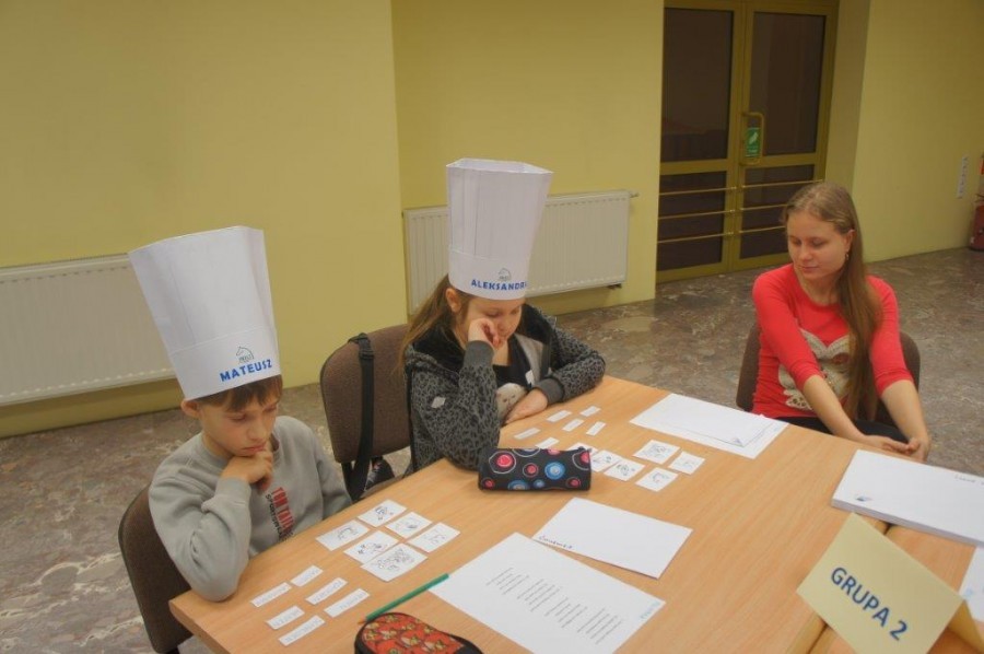 Tym razem gośćmi AMS byli uczniowie klasy 5b ze Szkoły Podstawowej nr 4 w Turku. Tematyka zajęć, które pod okiem dr Joanny Chojnackiej-Gärtner, prorektor ds. rozwoju i promocji, poprowadzili „starsi” studenci III roku germanistyki, była związana z kuchnią i kulinariami. Wyposażeni w deski i noże „młodsi” studenci kroili składniki sałatki makaronowej, czyli Nudelsalat. Wcześniej głośno powtarzali ich nazwy oraz nazwy przypraw. Określali też kolor: ‒ der rote Paprika, die grüne Gurke, der gelbe Käse, das weisse Salz, der schwarze Pfeffer. Dla utrwalenia słownictwa śpiewali przy akompaniamencie gitary piosenkę o przygotowywanej potrawie. Między kolejnymi wykonaniami przeboju tej akademii, studentki germanistyki sprawnie przeprowadzały konkursy wykorzystujące starszą i nowo nabytą wiedzę językową.