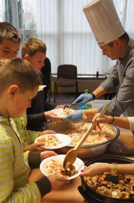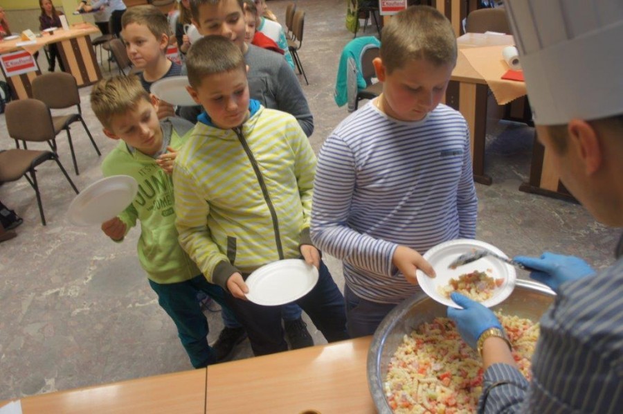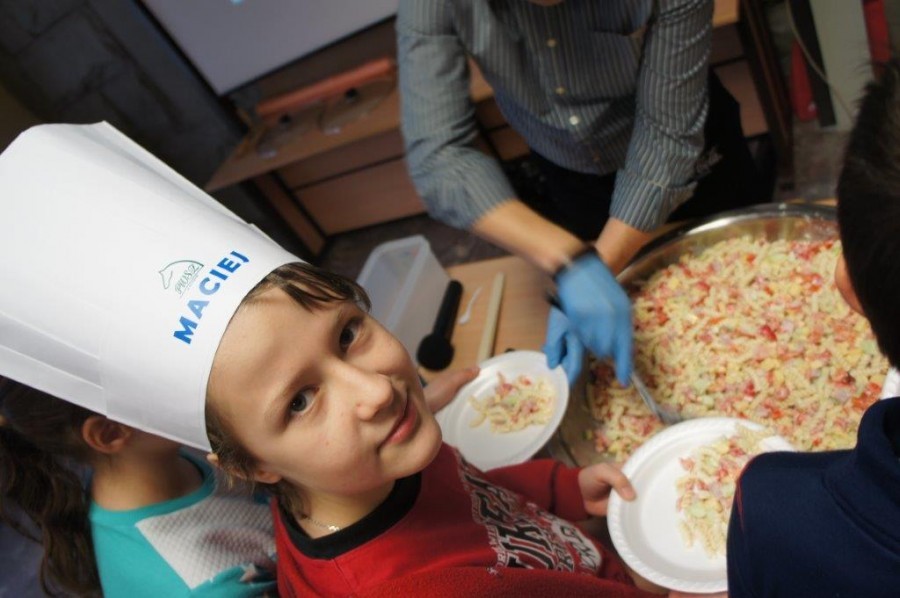 Na zakończenie uczestnicy Kochakademie z czystym sumieniem po dobrze wykonanej pracy i, oczywiście, z czystymi rękoma, mogli spróbować swojej sałatki. ‒ Taka zrobiona przez siebie jest najlepsza ‒ zapewniali zadowoleni.