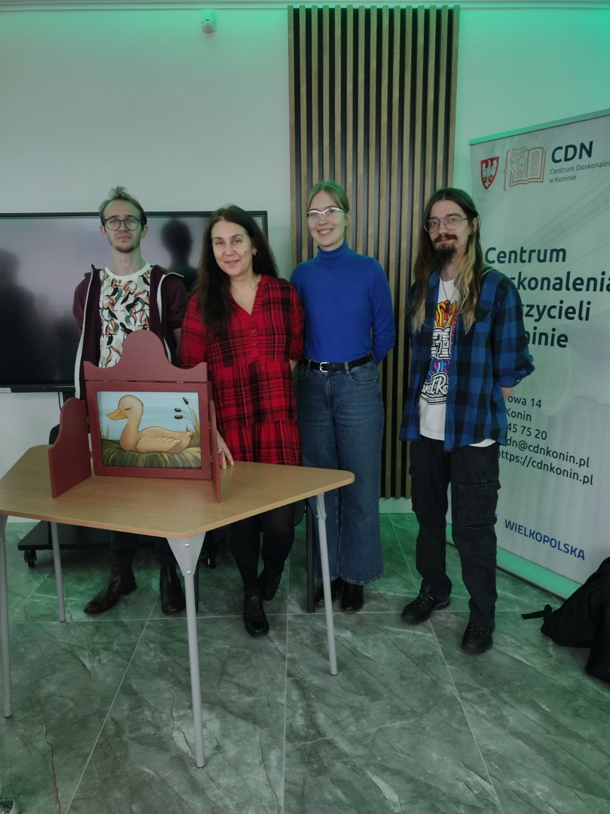 „Brzydkie kaczątko” w konwencji japońskiego teatru kamishibai przygotowali studenci ostatniego roku filologii angielskiej na studiach magisterskich. Widzami były dzieci z Przedszkola nr 32 w Koninie oraz ich nauczyciele.