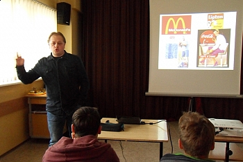 W ramach niestandardowej lekcji języka angielskiego dr Marek Derenowski przybliżył im temat stereotypów w kulturze. Zaprezentował różne aspekty tego zjawiska i w ciekawy sposób zachęcił młodzież do poszerzania wiedzy w zakresie języka, lingwistyki oraz kultury krajów anglojęzycznych.
