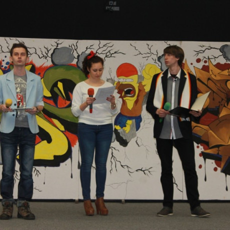 Prowadzącymi 2. Konkurs Języków Obcych „Językowe Show” byli studenci: Karolina Grochowska, Mirek Jeżyk oraz Karol Truschke.