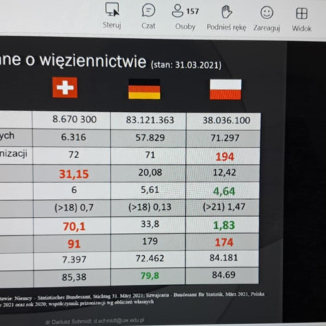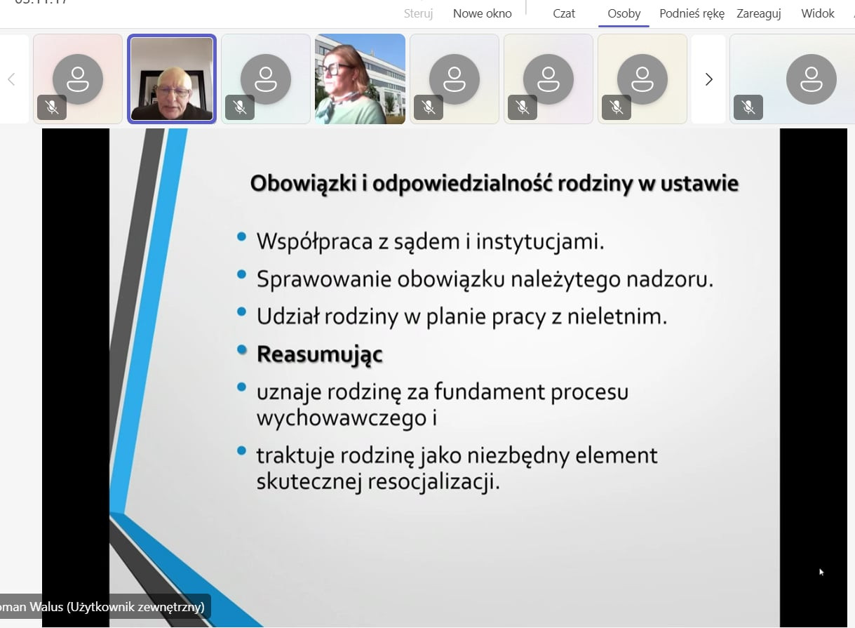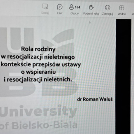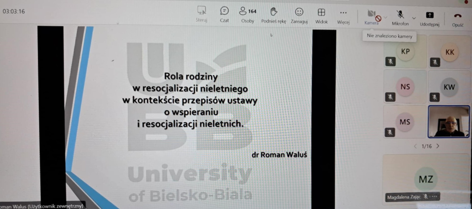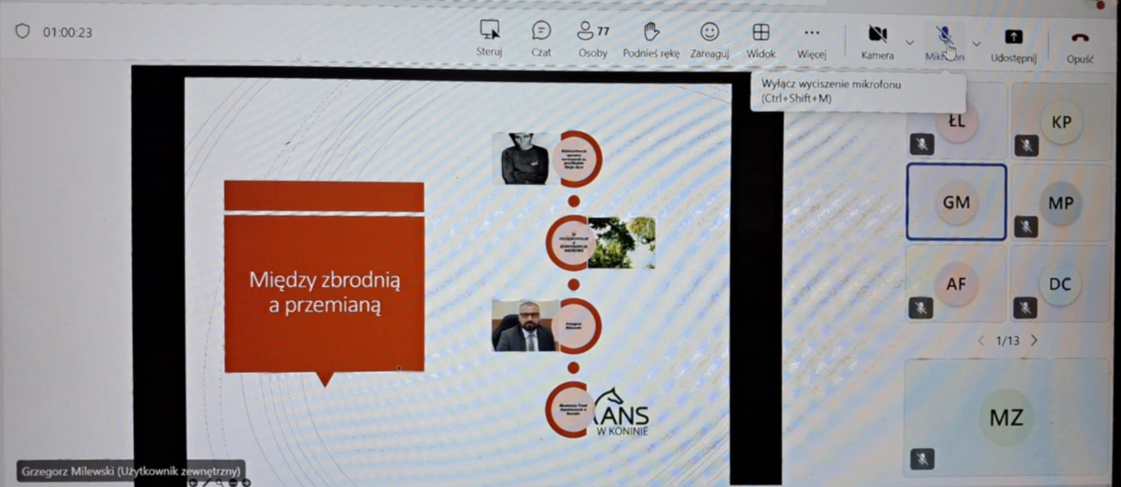 Zróżnicowana tematyka dotyczyła również kwestii rodzinnych i narracyjnych. Dr Roman Waluś z UBB omówił rolę rodziny w resocjalizacji nieletnich, natomiast dr hab. Agnieszka Rumianowska, prof. AM/ANS, znaczenie narracji biograficznych jako narzędzia odzyskiwania sprawstwa. Osadzenie zagadnienia w perspektywie porównawczej zapewnił dr Dariusz Szmidt (UW), przedstawiając ewolucję systemów penitencjarnych w krajach niemieckojęzycznych.