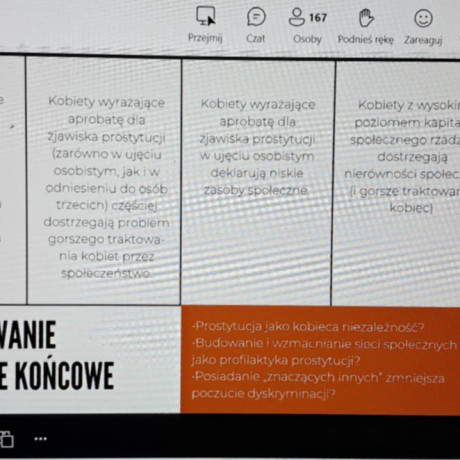 Duże zainteresowanie wzbudził wykład dr hab. Jakuba Bartoszewskiego, prof. ANS, który w syntetyczny, a zarazem krytyczny sposób omówił profilaktykę hejtu. Istotnym elementem sesji były również prezentacje dotyczące badań empirycznych prowadzonych w zakładach poprawczych, przedstawione przez dr. Pawła Radziszewskiego (Collegium Balticum/ANS), oraz interdyscyplinarna analiza zjawiska prostytucji przygotowana przez dr Kamilę Wylęgły z UWr.