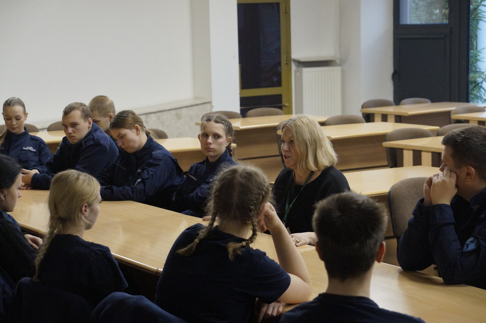 O kanałach sensorycznych i ich roli w komunikacji interpersonalnej traktował wykład i dyskusja po nim dla uczniów policyjnej klasy akademickiej z Zespołu Szkół Centrum Kształcenia Ustawicznego w Koninie.