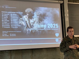 – Kariera w Wojsku Polskim jest dla tych, którzy szukają stabilnego zatrudnienia, rozwoju zawodowego i możliwości służenia Ojczyźnie – mówili studentom I roku bezpieczeństwa wewnętrznego kpr. Michał Tomczak oraz szer. Ewa Grzelak z Wojskowego Centrum Rekrutacji w Koninie.