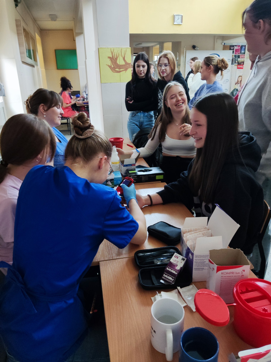 Z okazji Światowego Dnia Cukrzycy studentki pielęgniarstwa oraz SKN „Pielęgniarstwo Przyszłości” odwiedzili uczniów Zespołu Szkół Technicznych im. Marii Skłodowskiej-Curie w Koninie.