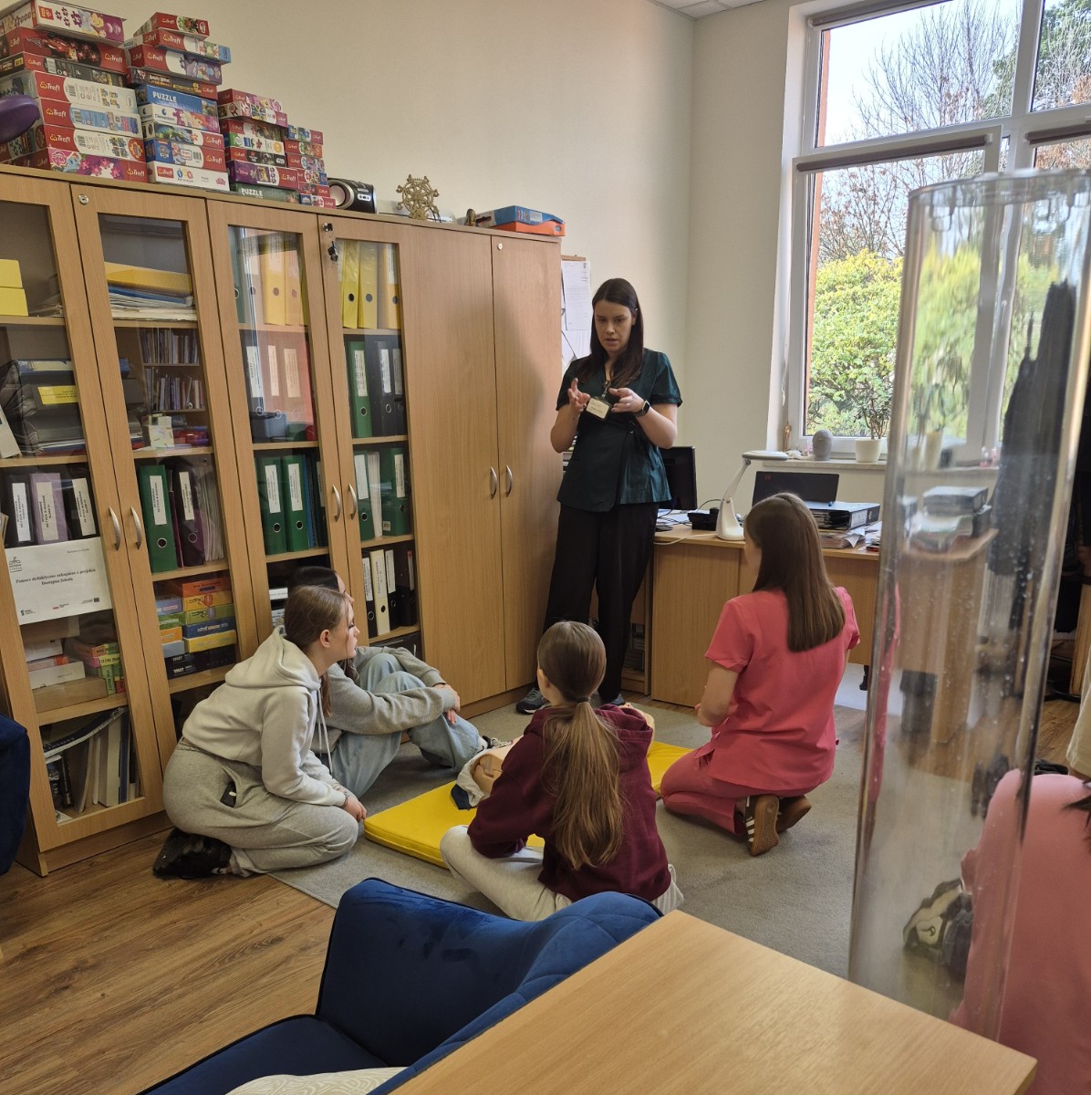 W dniu 05.11.2025 r. studenci Akademii Nauk Stosowanych w Koninie, z Koła Naukowego Pielęgniarstwo Przyszłości gościło w Szkole Podstawowej nr 11 im. Floriana Marciniaka, w której uczniowie z klasy VIII ćwiczyli czynności resuscytacyjno-krążeniowe. To ważne spotkanie, ponieważ pod sprawnym „okiem” studentów z kierunku Pielęgniarstwa uczniowie mogli w sposób bezpieczny przećwiczyć czynności, które w przyszłości mogą okazać się ważne podczas ratowania życia i zdrowia członków rodziny, jak i osób nieznanych. Najważniejsze to pokonać strach i uwierzyć we własne możliwości, czego studenci uczyli słuchaczy.