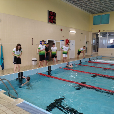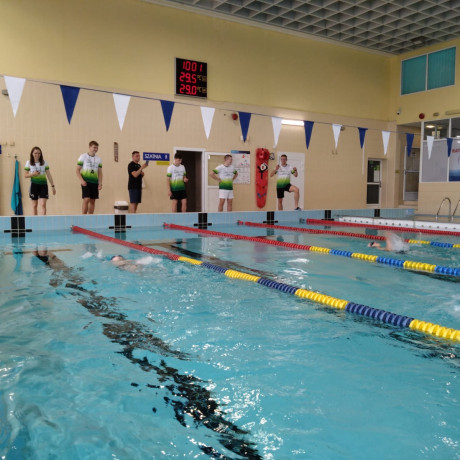 Studenci II roku wychowania fizycznego czuwali nad prawidłowym przebiegiem rywalizacji sportowej podczas Zawodów Pływackich z okazji Dnia Dziecka, które podsumowały cykl „ABC nauki pływania”.