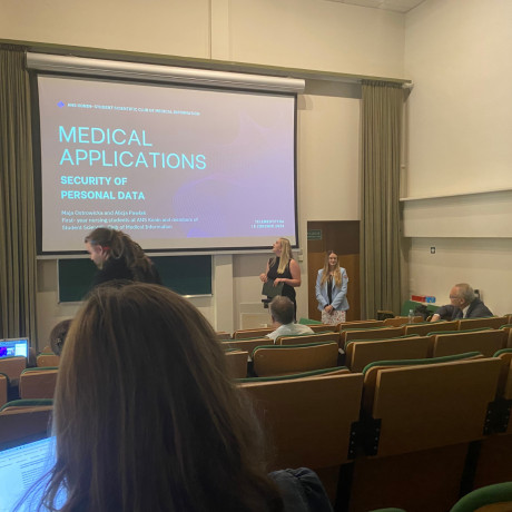 Pierwsze wystąpienie naszych studentów – „Aplikacje medyczne – bezpieczeństwo danych osobowych” –dotyczyło metod ochrony danych osobowych w kontekście cyfrowej opieki zdrowotnej. – Mówiliśmy o tym, jak zaawansowane systemy zabezpieczeń gwarantują bezpieczeństwo informacji wrażliwych, a także podkreśliliśmy, że mimo rosnących zagrożeń, kradzież takich danych jest niezwykle trudna dzięki odpowiednim protokołom bezpieczeństwa – mówi Bartłomiej Michalak, opiekun SKN Informacji Medycznej.
