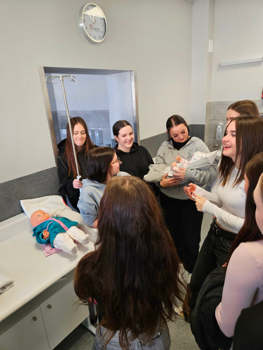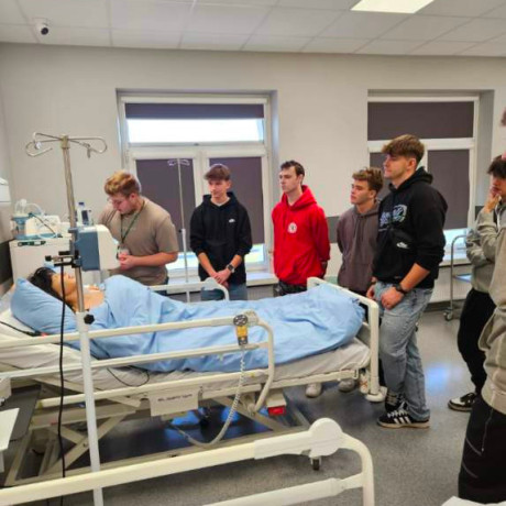 Podczas zajęć uczniowie mieli okazję doświadczyć, jak odczuwają osoby starsze lub otyłe, a w sali badań fizykalnych – w sposób praktyczny – ćwiczyli osłuchiwanie tonów serca.