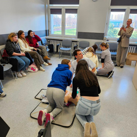 Tym razem dla uczniów klasy 3 o kierunku ratowniczo-medycznym z Zespołu Szkół im. M. Kopernika w Koninie, studenci pielęgniarstwa oraz SKN Pielęgniarstwo Przyszłości zorganizowali warsztaty dotyczące czynności resuscytacyjno-krążeniowych, a także zastosowania obciążników „The Aged Simulation Set”.