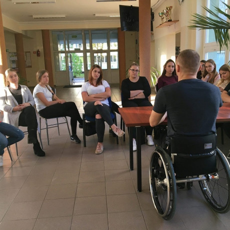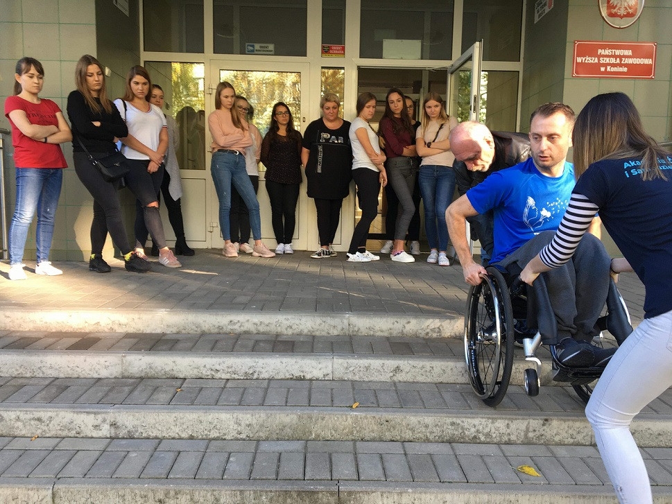 Studenci II roku kierunku pielęgniarstwo w dniu 18 października 2019 r. odbywali zajęcia terenowe z przedmiotu pielęgnowanie niepełnosprawnych. Gościliśmy na zajęciach z aktywnej rehabilitacji przedstawicieli z Fundacji im. Doktora Piotra Janaszka Podaj Dalej.