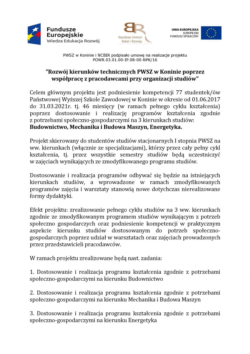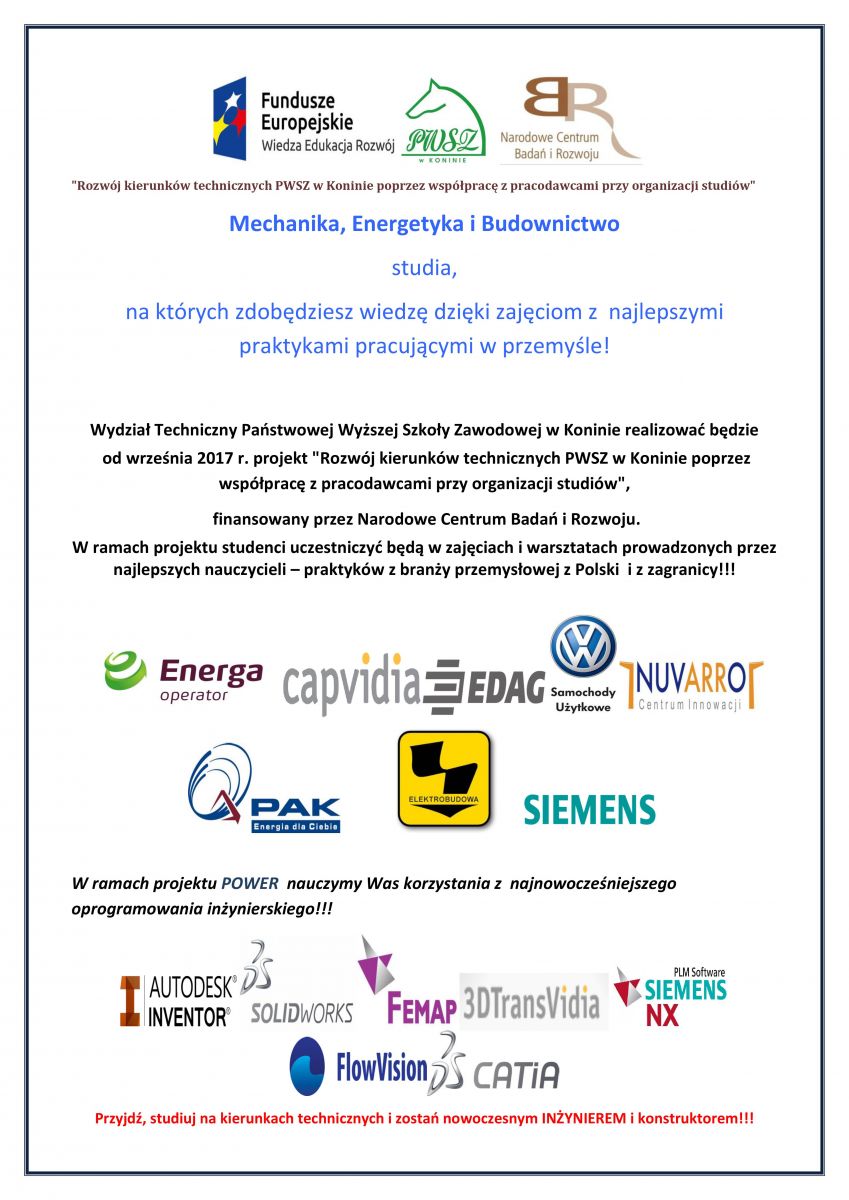 "Rozwój kierunków technicznych PWSZ w Koninie poprzez współpracę z pracodawcami przy organizacji studiów"