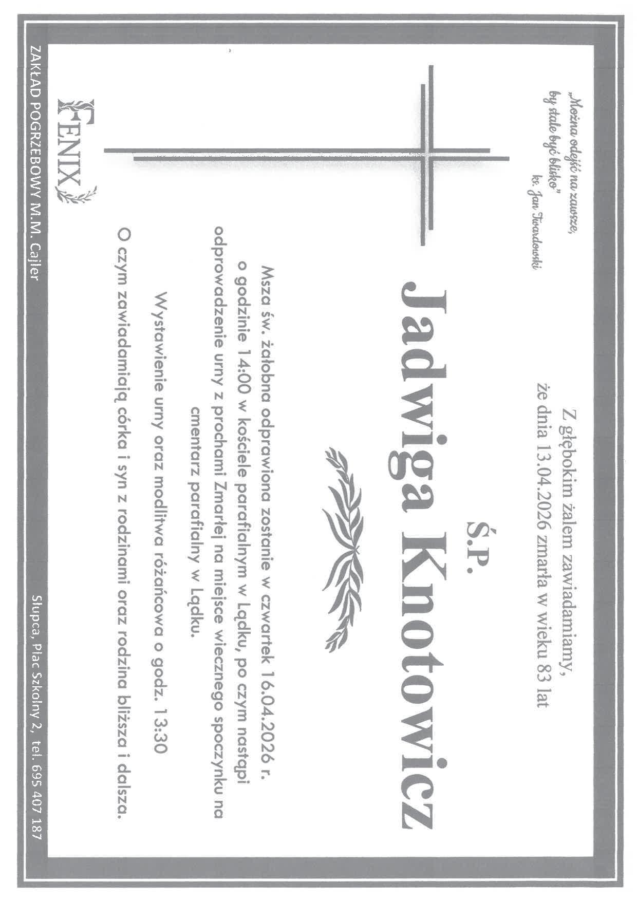 Dr Jadwiga Knotowicz zmarła 13 kwietnia 2026 r.