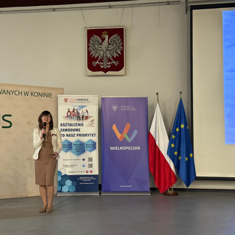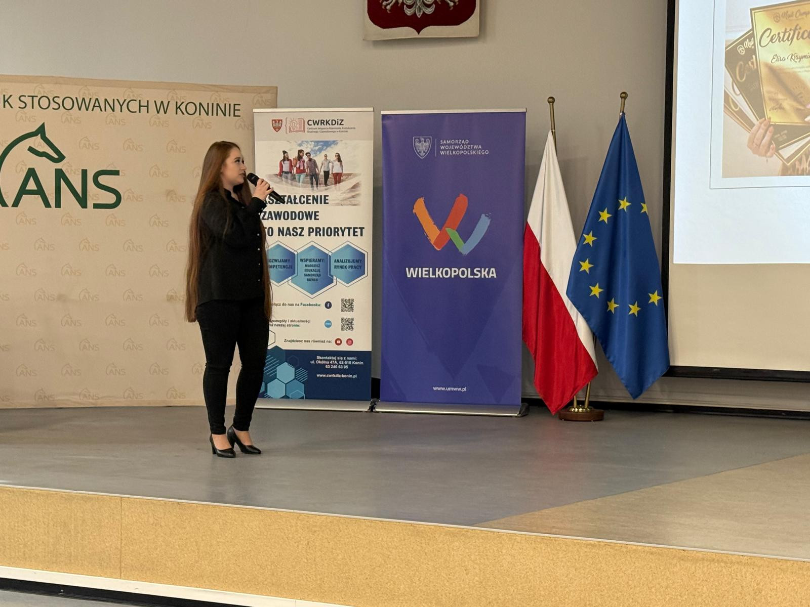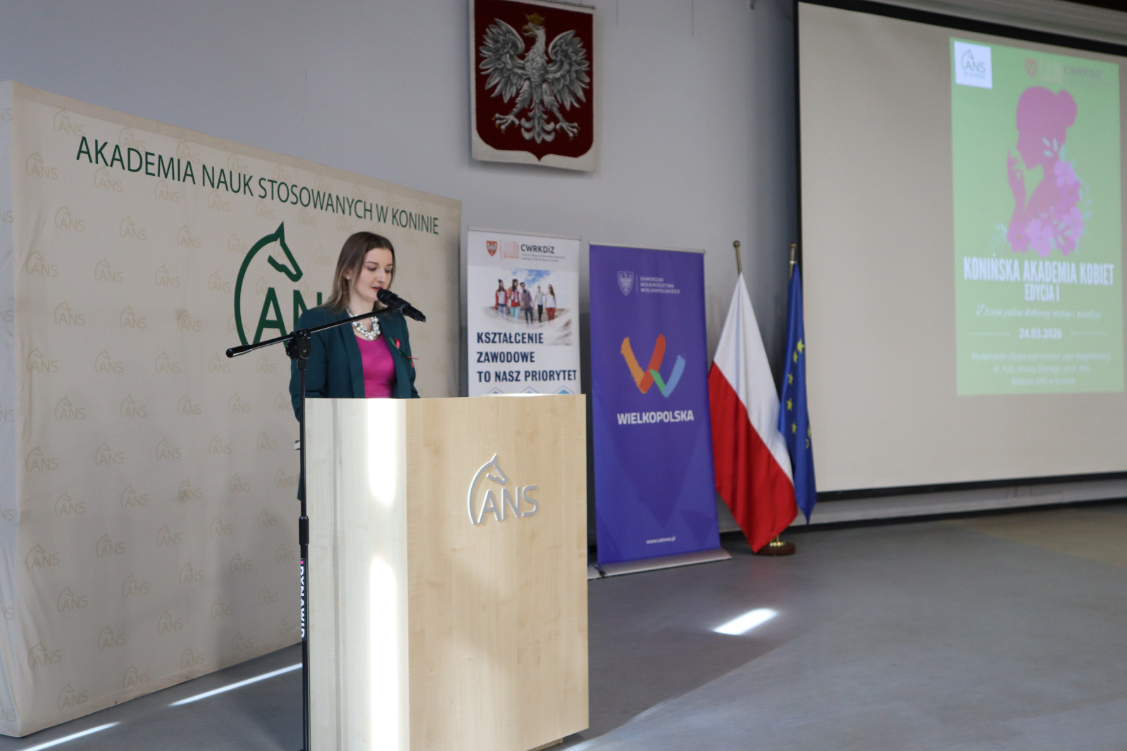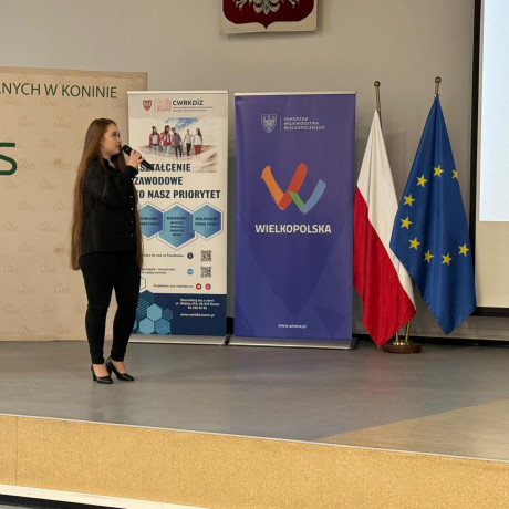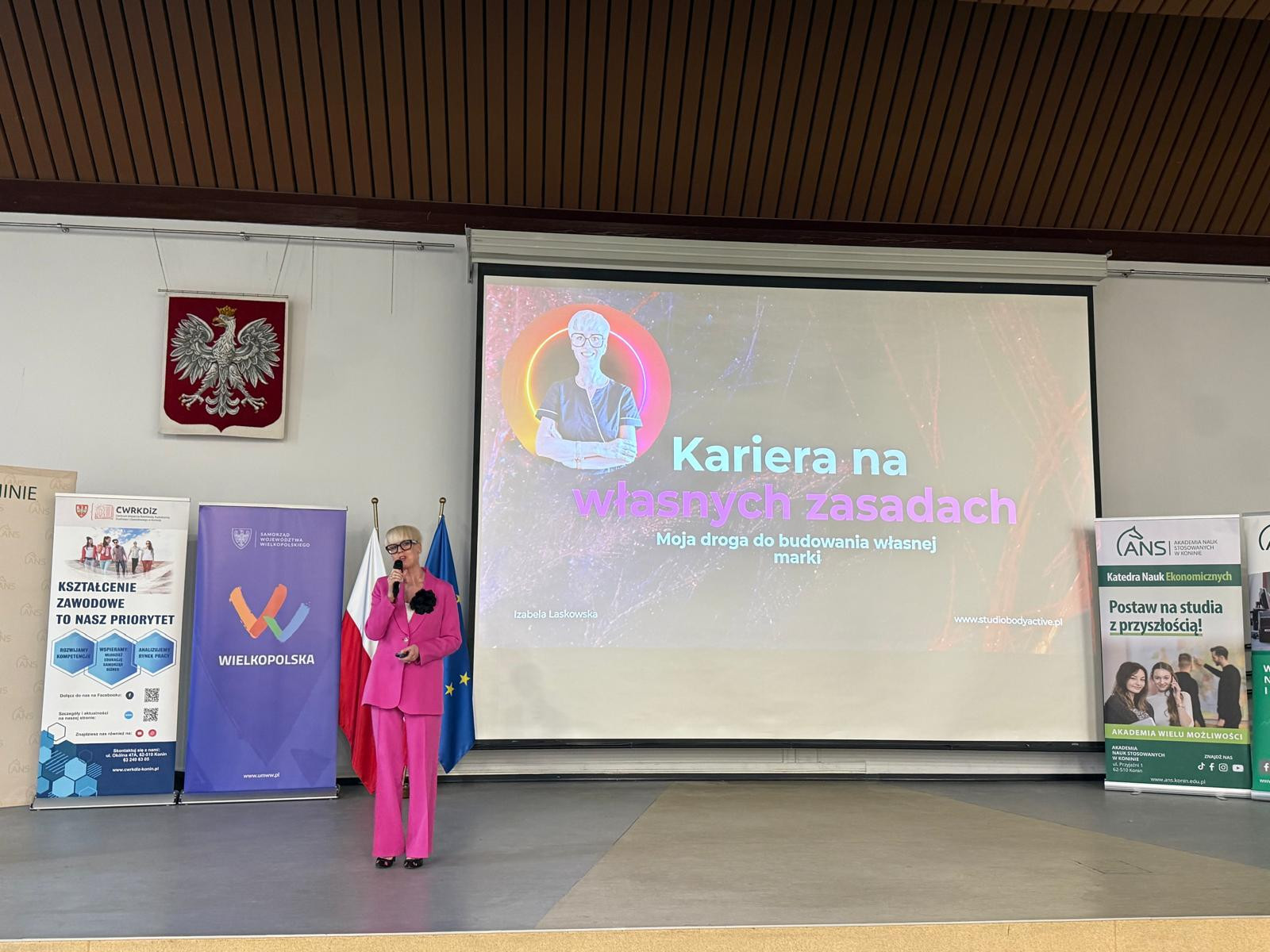 Arleta Jaśniewicz, wicedyrektorka Centrum Wsparcia Rzemiosła, Kształcenia Dualnego i Zawodowego (CWRKDiZ) w Koninie, mówiła o świadomym budowaniu kariery zawodowej oraz podejmowaniu decyzji zgodnych z własnymi celami i wartościami.
