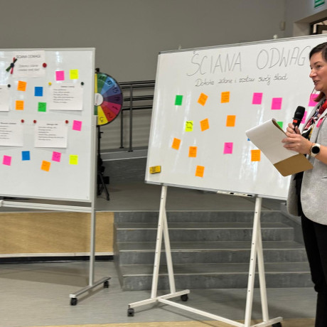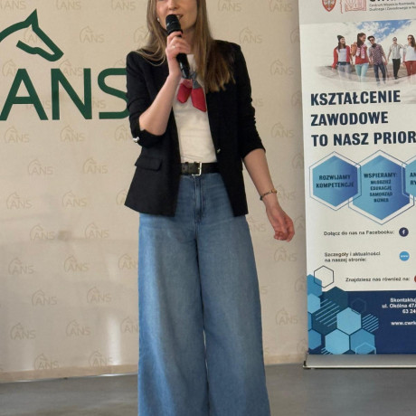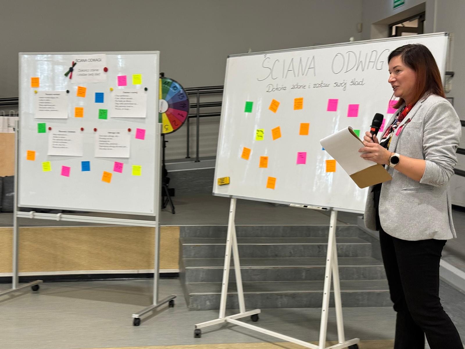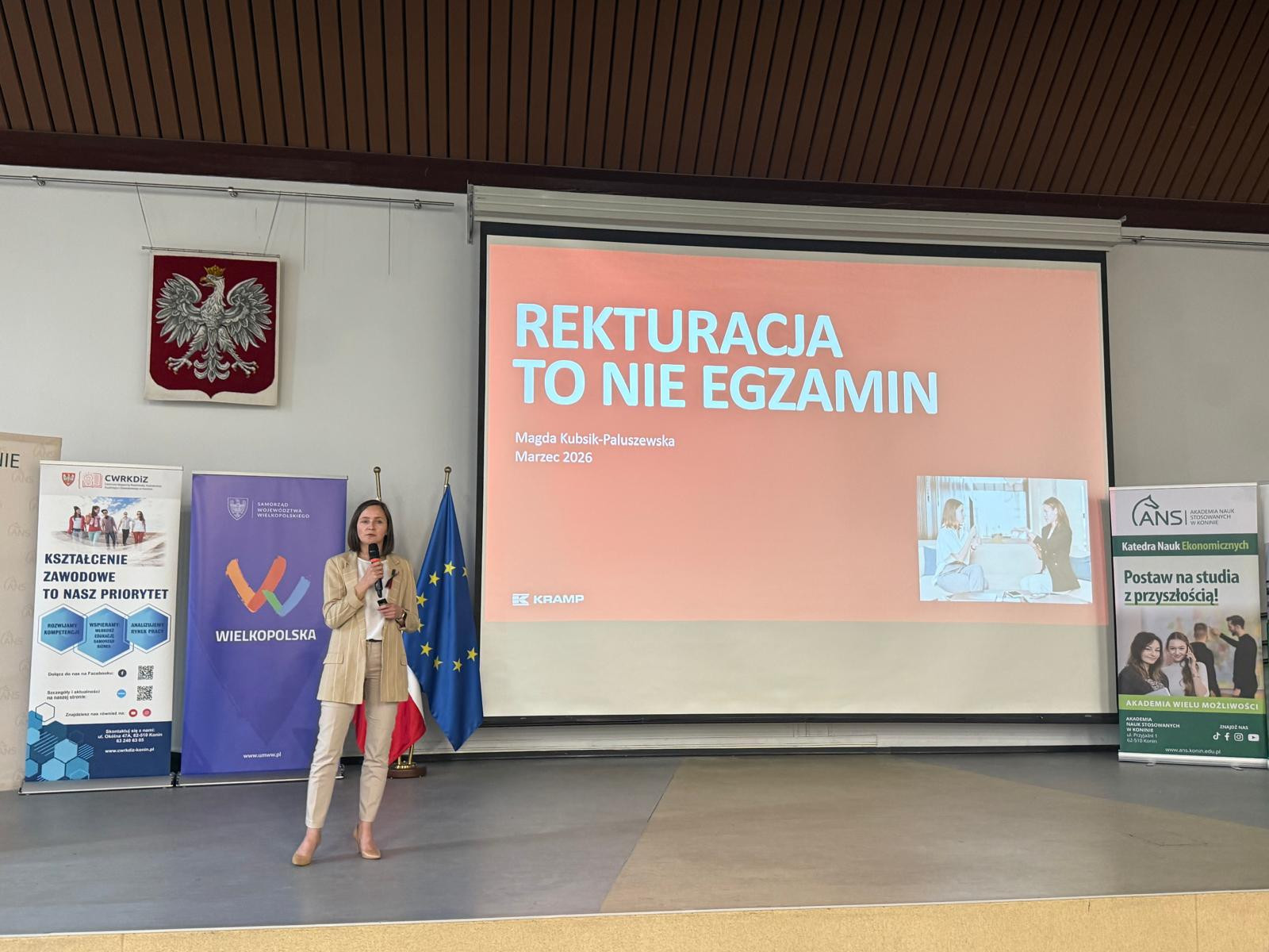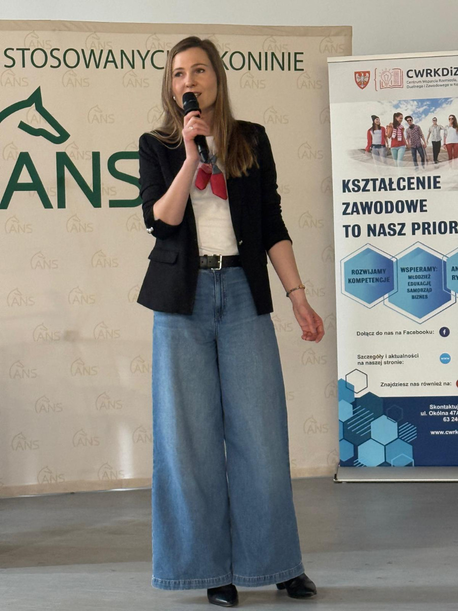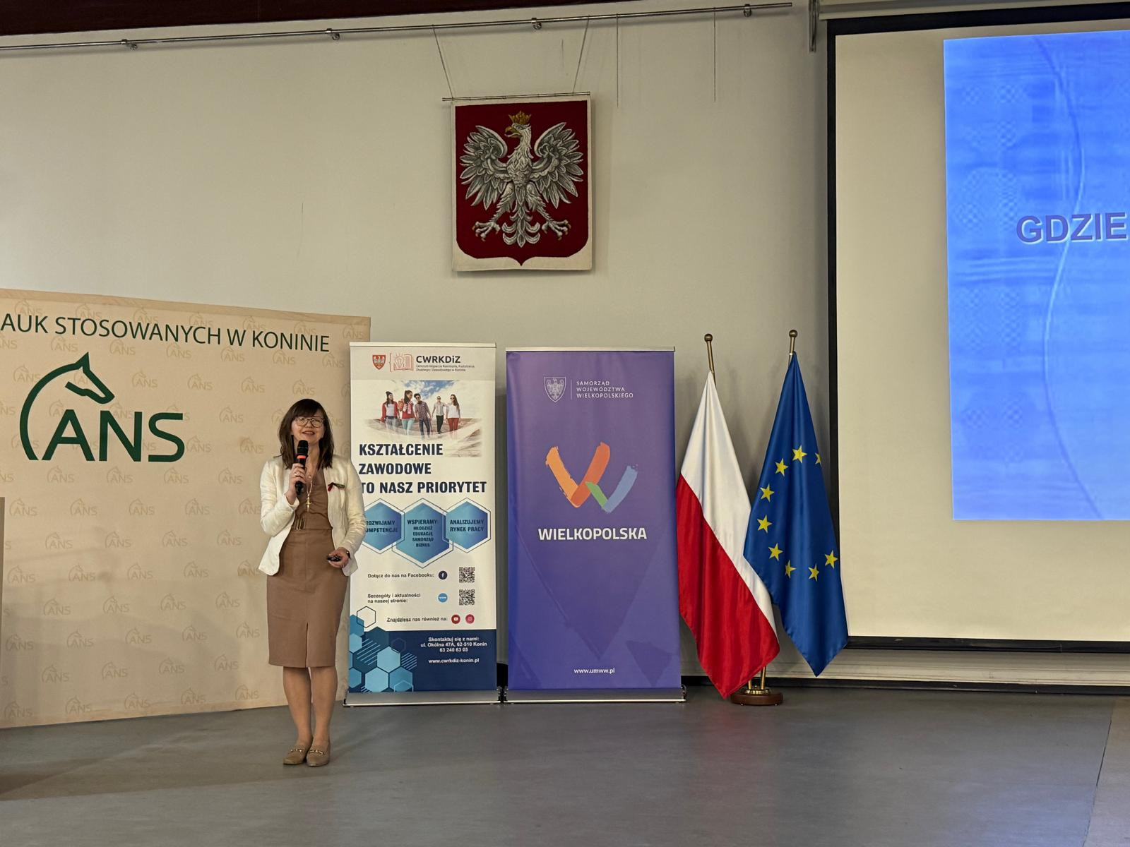 Arleta Jaśniewicz, wicedyrektorka Centrum Wsparcia Rzemiosła, Kształcenia Dualnego i Zawodowego (CWRKDiZ) w Koninie, mówiła o świadomym budowaniu kariery zawodowej oraz podejmowaniu decyzji zgodnych z własnymi celami i wartościami.