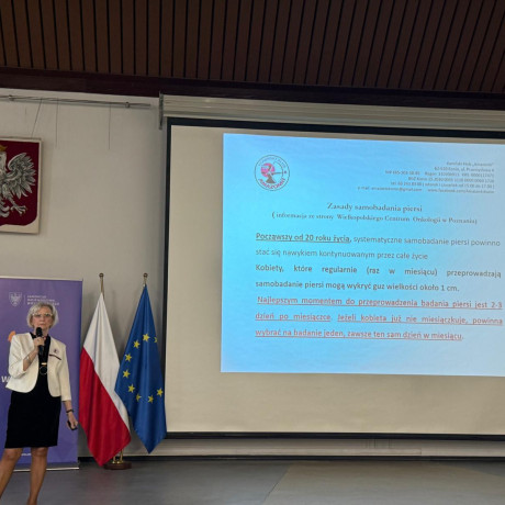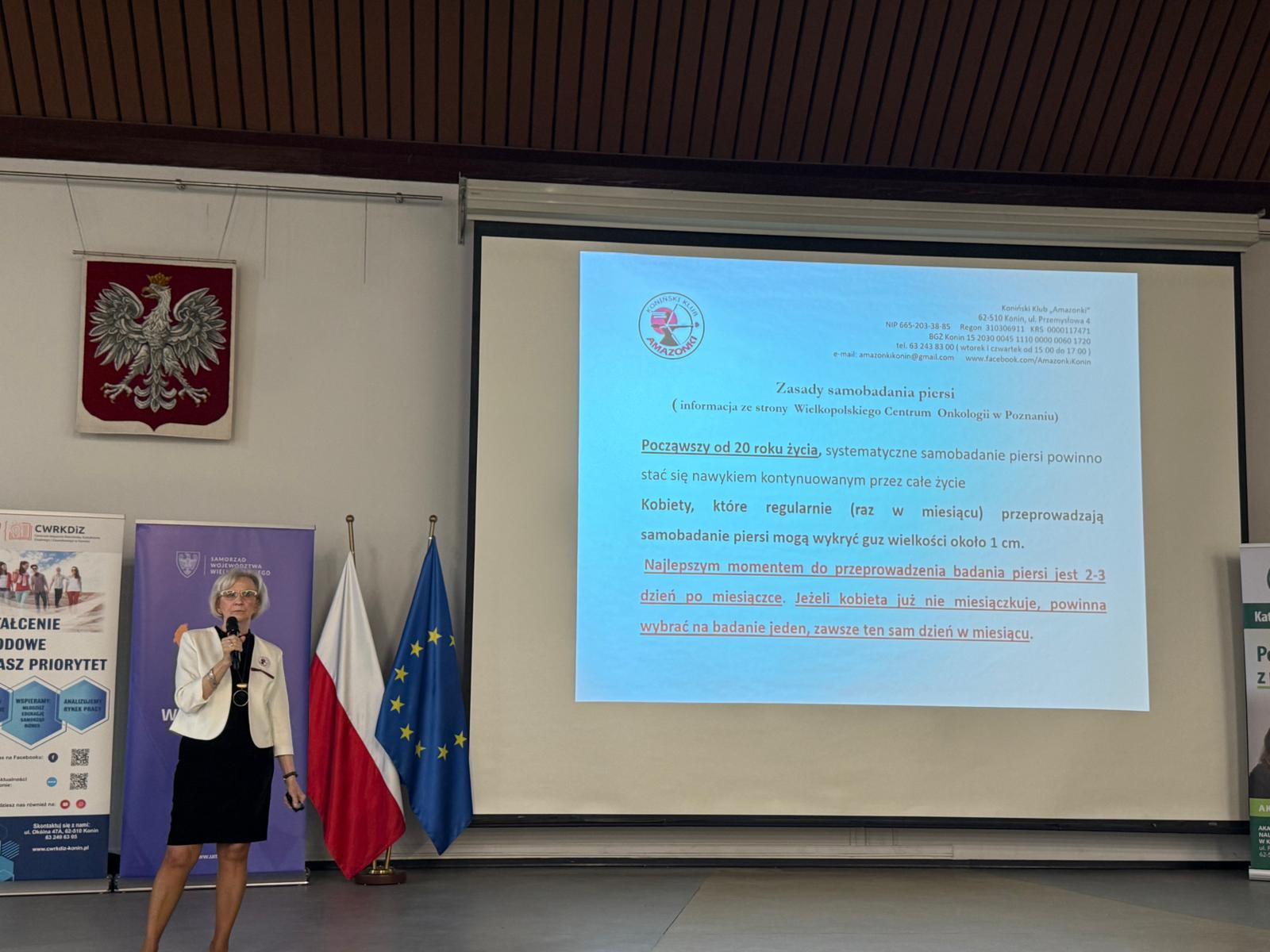 Ewa Stankiewicz, przedstawicielka konińskiego Klubu Amazonki, podkreśliła znaczenie profilaktyki raka piersi oraz edukacji w zakresie samobadania.