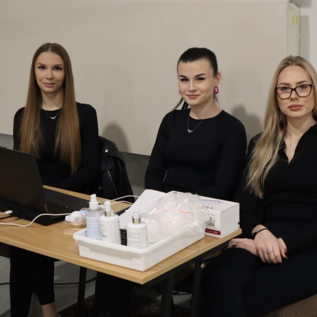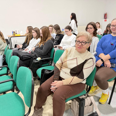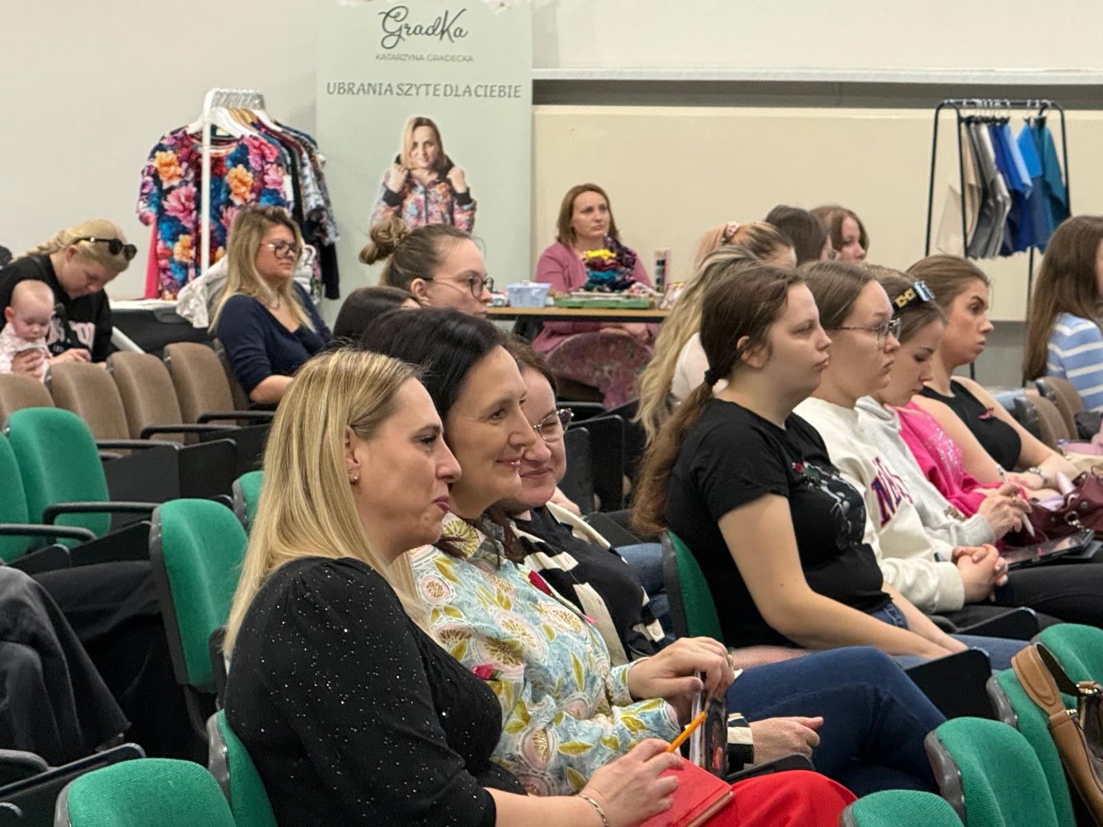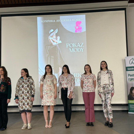 Jednym z najbardziej widowiskowych elementów spotkania był pokaz mody marki GRADKA, której twórczynią jest Katarzyna Gradecka. Na wybiegu zaprezentowały się nasze studentki: Nikola Goińska, Paulina Dylewska, Maja Pyrzyńska, Klaudia Tunicka, Maja Łojewska oraz Vlada Kovatova, które z dużym zaangażowaniem i profesjonalizmem zaprezentowały kolekcję.