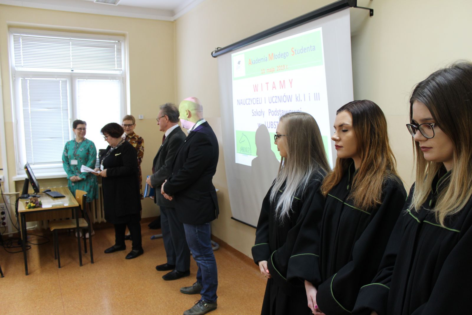 W akademii wzięli udział uczniowie ze Szkoły Podstawowej w Lubstowie, którzy przybyli pod opieką swoich nauczycieli. W ramach AMS odbyła się krótka prezentacja Uczelni, zajęcia warsztatowe w krainie sztuki i matematyki oraz zabawy z uczniami. Dzieci podczas zajęć wykazały się dużą pomysłowością i kreatywnością.
