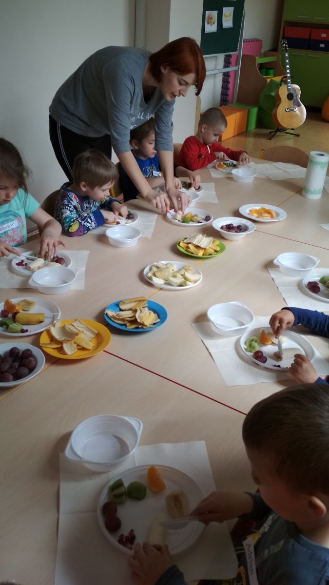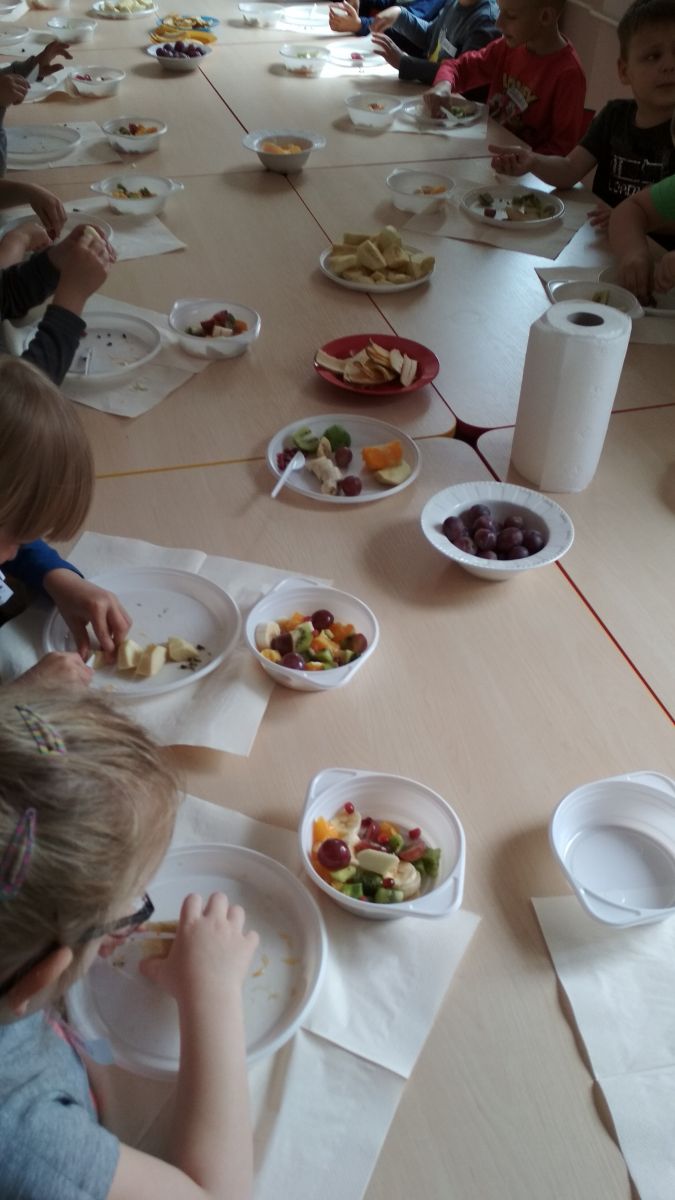 Podczas spotkania odbyła się degustacja samodzielnie przygotowanej przez dzieci sałatki owocowej.