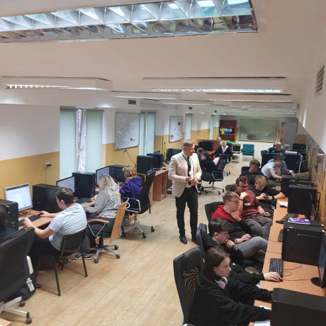 O tajnikach globalnej logistyki mówił uczniom koła naukowego LOG-WAY z Zespołu Szkół Centrum Kształcenia Ustawicznego im. Stefana Batorego w Koninie dr Szymon Zimniewicz z Katedry Nauk Ekonomicznych.