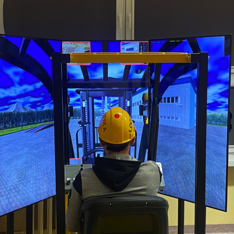 Naśladuje ruch, obsługę i kontrolę tego prawdziwego, zarówno spalinowego, jak i elektrycznego, a informację o każdym błędzie wyświetli na ekranie. Symulator wózków widłowych, bo o nim mowa, mają od niedawna do dyspozycji studenci kierunków logistycznych i technicznych.