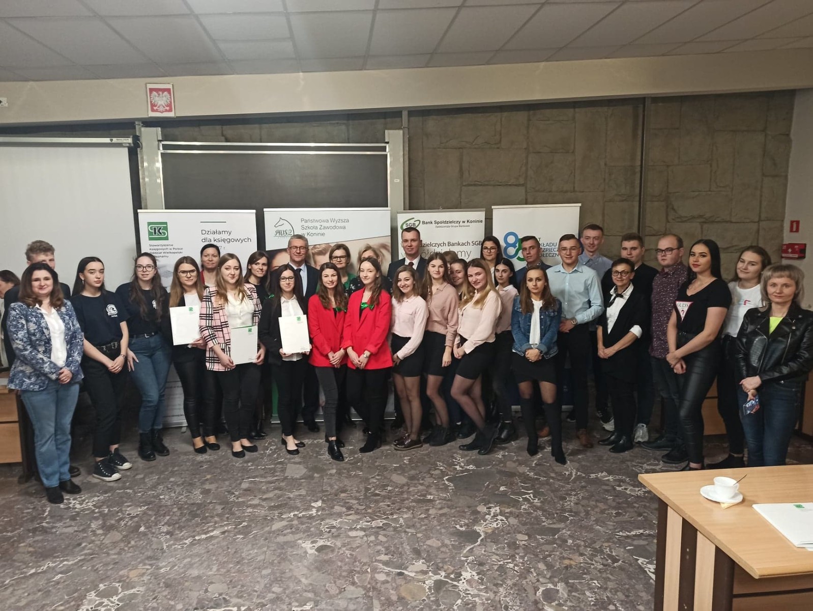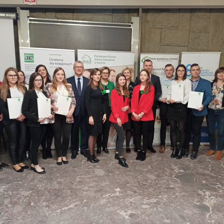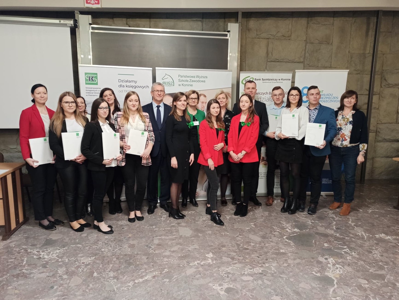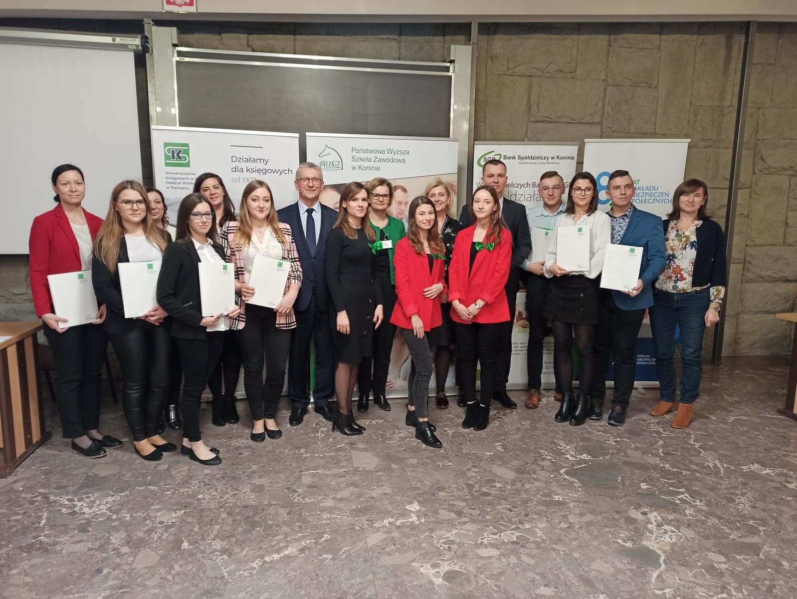 Komisja Konkursowa w składzie Sz. P. Kazimierz Zając – Prezes Stowarzyszenia Księgowych w Polsce Oddział w Koninie, dr. Małgorzata Cieciura- Wykładowca Państwowej Wyższej Szkoły Zawodowej w Koninie, Sz. P. Przemysław Jóźwiak- Prezes Banku Spółdzielczego w Koninie, oraz Sz. P. Arleta Czajkowska- reprezentująca Zakład Ubezpieczeń Społecznych Oddział w Koninie - wytypowała następujących Laureatów Konkursu: