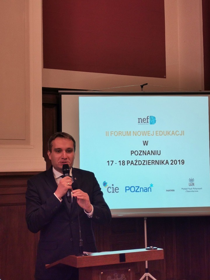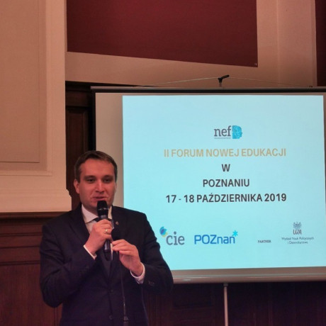 W dniach 17-18 października br. odbyło się międzynarodowe forum poświęcone nowej edukacji. Podczas forum odbyły się liczne panele dyskusyjne, warsztaty adresowane do specjalistów związanych z edukacją, rynkiem pracy, oświatą i instytucjami akademickimi. Hasło przewodnie forum to „Kompetencje XXI wieku i wyzwania edukacji. Samorząd – Pracodawca – Oświata”. Forum otworzyli Dziekan Wydziału Nauk Politycznych i Dziennikarstwa UAM prof. Andrzej Stelmach oraz Mariusz Wiśniewski, zastępca prezydenta Poznania odpowiedzialny za oświatę.