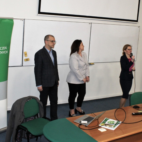 Podczas wystąpienia Pani Agnieszka Jąkalska, kierownik Inspektoratu w Koninie oraz Pan Dariusz Romański, naczelnik Wydziału Kadrowo-Płacowego przedstawili studentom różne możliwości współpracy podkreślając przy tym swoją otwartość i elastyczność w dopasowaniu do potrzeb praktykantów. Zachęcali do uczestnictwa w praktykach na terenie całej Wielkopolski, w szczególności w Koninie i Poznaniu, ale również w inspektoratach w mniejszych miejscowościach.