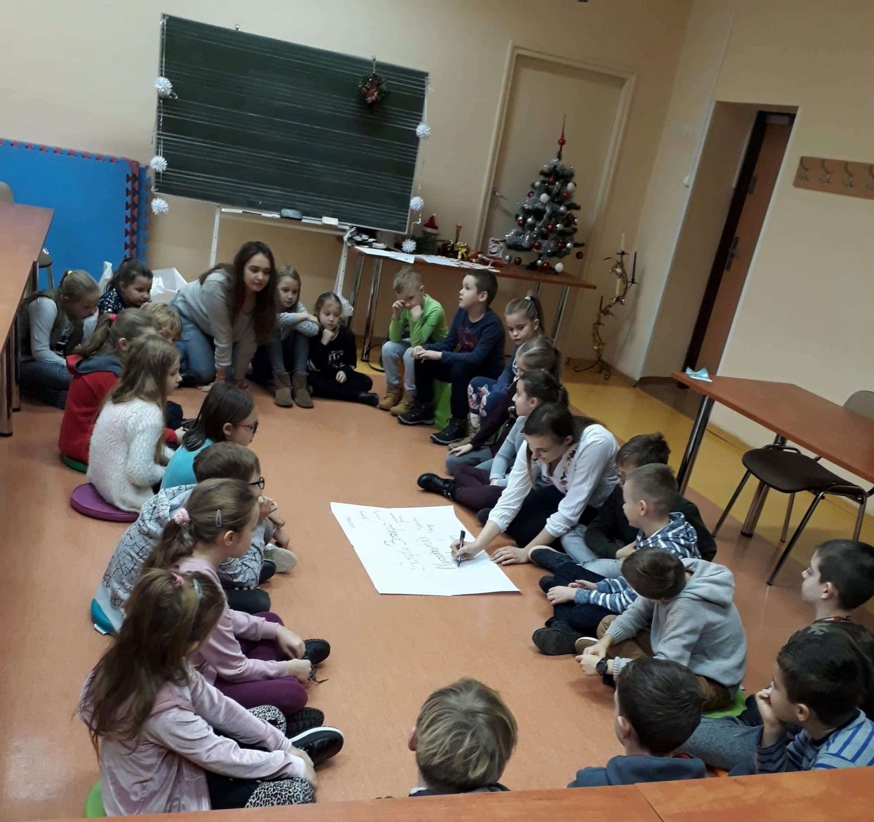Studentki pedagogiki zaprosiły 17 grudnia 2018 r. kolejną grupę dzieci, aby porozmawiać z nimi o zbliżających się Świętach Bożego Narodzenia. Tym razem przybyły dzieci ze Szkoły Podstawowej nr 6 w Koninie.
