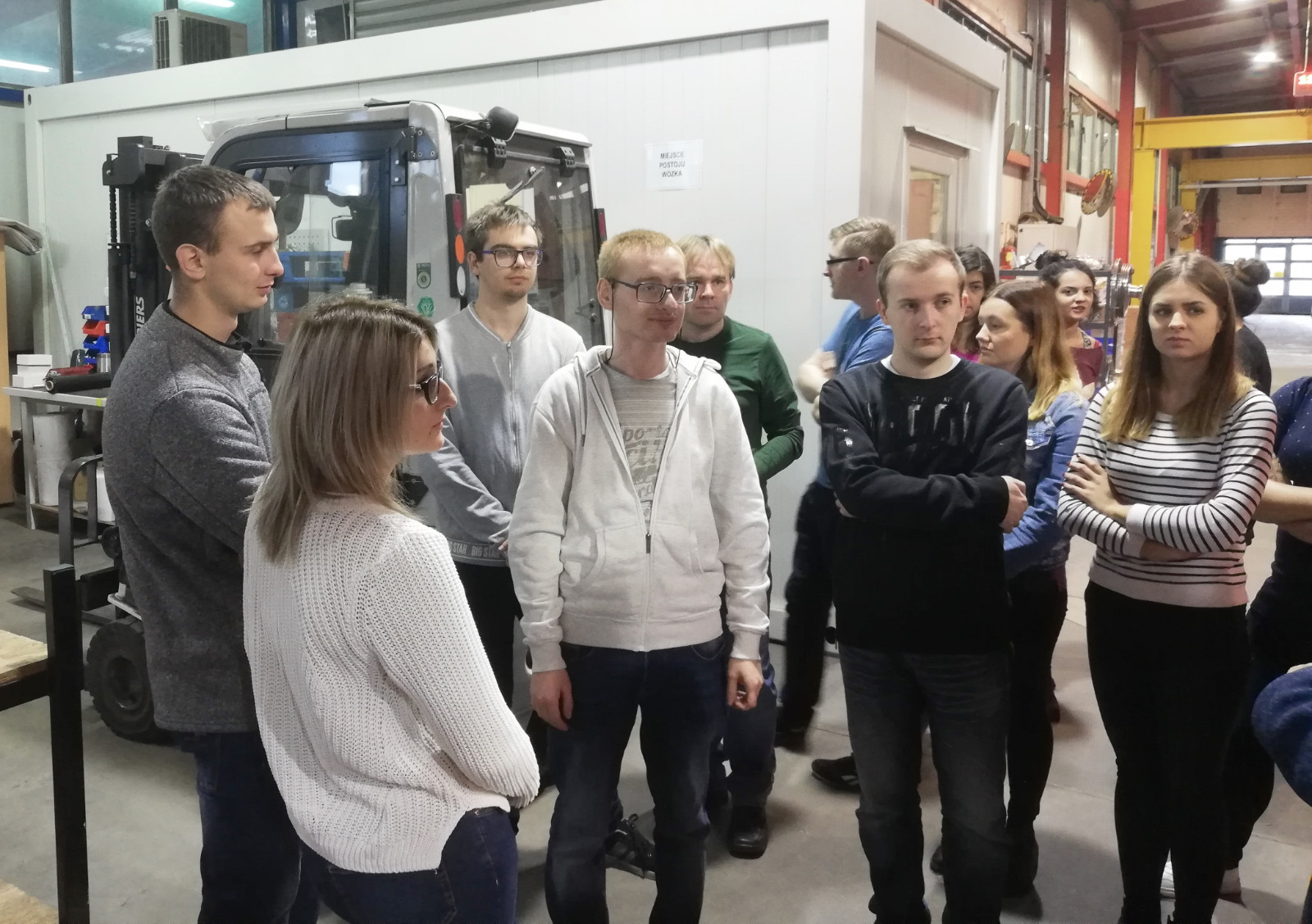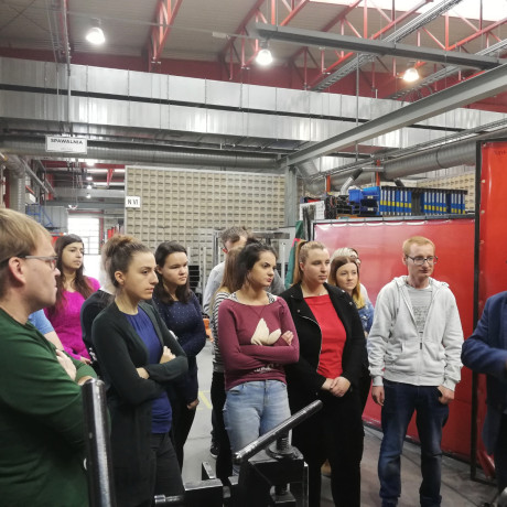Po krótkiej charakterystyce przedsiębiorstwa oraz przedstawieniu możliwości odbywania praktyk studenckich i podjęcia pracy, studenci mieli możliwość zapoznania się z realizowanymi procesami produkcyjnymi. Zostali zapoznani z funkcjonowaniem działu spawalni, lakierni czy też z poszczególnymi stanowiskami, na których odbywał się montaż urządzeń.