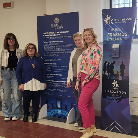 Mgr Danuta Rakowska, kanclerz ANS w Koninie, oraz mgr Beata Wieliczko, koordynator projektu „Rozwój studiów o profilu praktycznym i form kształcenia ustawicznego dostosowanych do potrzeb Wielkopolski Wschodniej”, przebywały w ramach programu Erasmus + na Università degli studi di Bari Aldo Moro (Włochy). Wizyta (7–11 kwietnia) obejmowała spotkania z pracownikami uczelni partnerskiej i koordynatorami programu Erasmus+, wymianę doświadczeń oraz zapoznanie się z infrastrukturą uczelni partnerskiej z siedzibą w Bari w regionie Apulia.