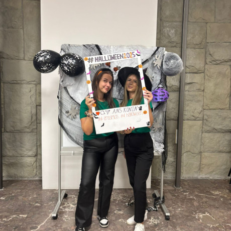 W mrocznej atmosferze halloweenowych dekoracji, przy dźwiękach wielojęzycznych rozmów i wspólnych zdjęciach, nie zabrakło integracji, śmiechu, pozytywnej energii oraz konkursu na najbardziej kreatywną dynię.
