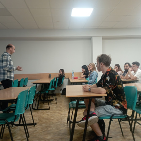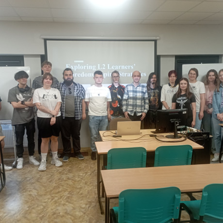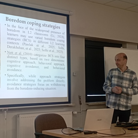 Prof. Mehdi Solhi z Istanbul Medipol University (https://www.medipol.edu.tr/en) podczas zajęć dla studentów filologii II stopnia przybliżył temat nudy w kontekście nauki języka obcego. Omówił, jaki wpływ może mieć nuda na zachowanie i efektywność uczniów oraz jak ją rozpoznawać i przeciwdziałać jej w procesie dydaktycznym.