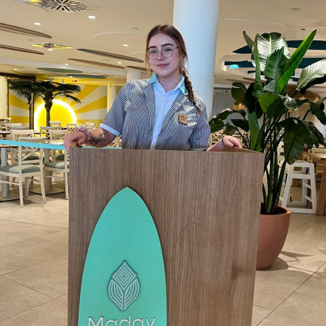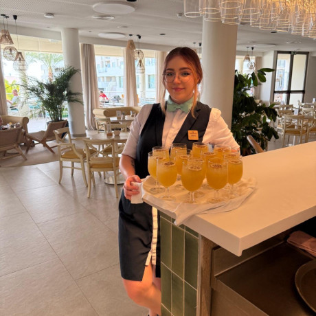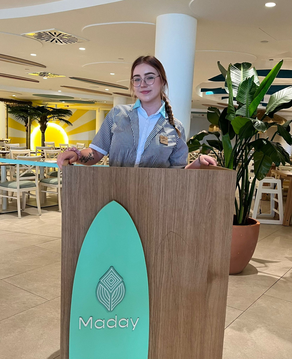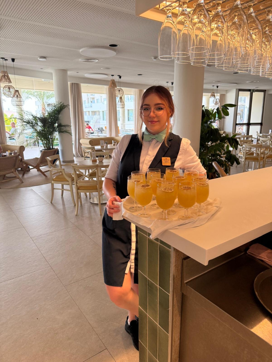 Pracuję w hotelu Iberostar Waves Gaviotas Park, w restauracji i barze. Sezon letni to prawdziwe wyzwanie – tempo jest szybkie, a gości nie brakuje – ale właśnie dzięki temu zdobywam cenne doświadczenie i uczę się pracy z ludźmi z różnych stron świata.