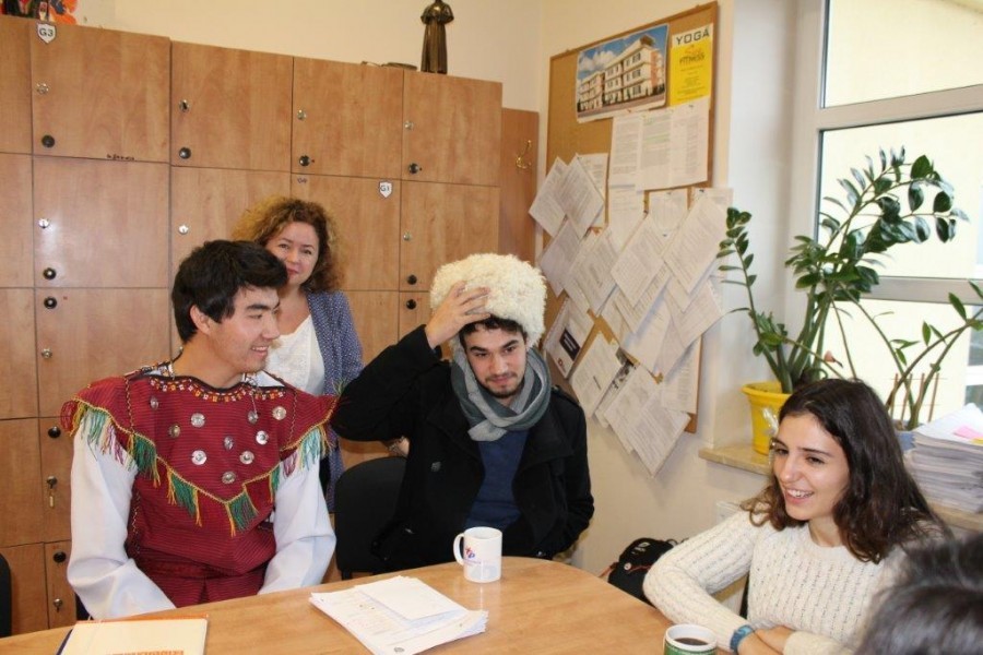 Pięcioro studentów zarządzania: Sofia Salvador, Telma Melo, Eduardo Farinha z Portugalii, Fulden Ercan z Turcji i Abdulkhalip Kakabay z Turkmenistanu, przyjechali na studia do Konina w ramach programu Erasmus+. 8 grudnia odwiedzili gimnazjalistów z Chorznia. Ze swadą opowiadali po angielsku skąd przyjechali, przypomnieli najważniejsze wydarzenia z historii ich krajów. Nie skończyło się jednak na historii i geografii. W swoich prezentacjach były zdjęcia najbardziej charakterystycznych potraw i napojów, w tym wina, którym szczycą się Portugalczycy, i kilka minut z muzyką. Spore zainteresowanie budził Abdulkhalip, który specjalnie na to spotkanie przywiózł i zaprezentował, oczywiście na sobie, strój narodowy. Czapkę ze skóry owcy chętnie przymierzały nie tylko koleżanki, ale też nauczycielki.
