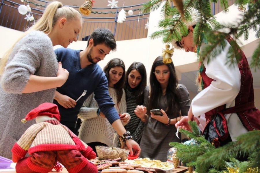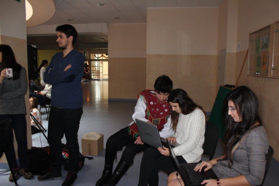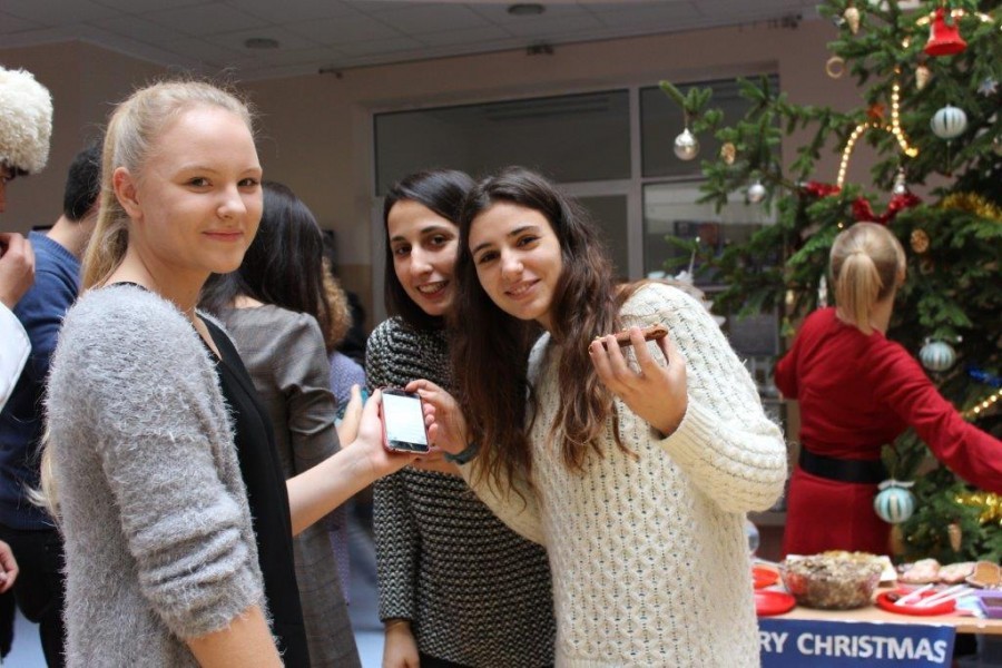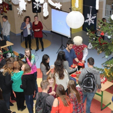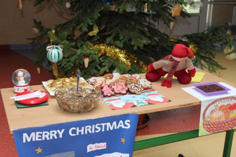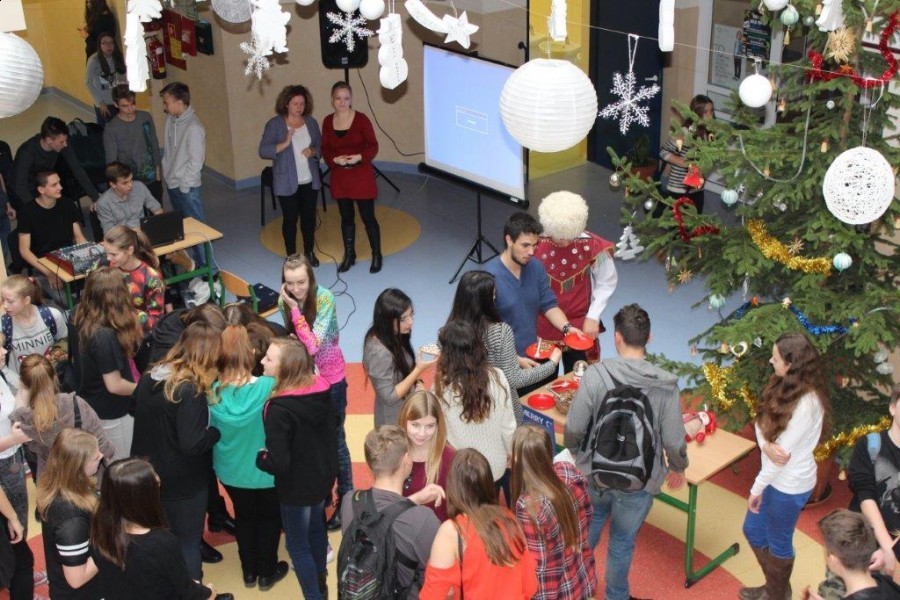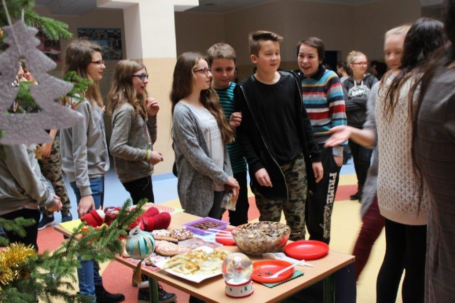 Goszczący ich uczniowie również się postarali. Zapach pierogów okraszonych tłuszczem i cebulką, które studenci z zagranicy zdążyli już wcześniej poznać i polubić, roznosił się po całym holu, w którym odbyły się prezentacje. Zabrzmiała międzynarodowa kolęda „Cicha noc”, wykonana przez uczennice częściowo po angielsku, częściowo po polsku. W przerwach nie tak bardzo różniący się wiekiem studenci i uczniowie rozmawiali w grupkach, robili sobie wspólne selfie.