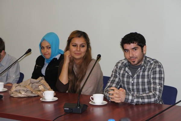 Podczas spotkania, JM Rektor przywitał oficjalnie naszych gości, opowiedział o placówce, a także odpowiadał na pytania studentów dotyczące m.in. działalności PWSZ w Koninie i pracy Rektora. Studenci filologii angielskiej Mateusz Rybicki i Adrian Wysocki zapoznali przybyłych z krótką charakterystyką miasta oraz przedstawili możliwości spędzania czasu poza Uczelnią. W ramach rewanżu, goszczący u nas studenci przedstawili Panu Rektorowi krótką historię i kulturę krajów, z których pochodzą, a także powody, dla których zdecydowali się na przyjazd do naszego miasta i podjęcie studiów na naszej Uczelni.
