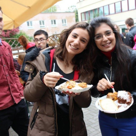 Dzień Turecki bowiem z jednej strony pozwala im przez moment poczuć się jak u siebie, z drugiej daje możliwość podarowania polskim kolegom choćby namiastki swojej ojczyzny. Opowiadają o jej bogatej kulturze, historii, tradycjach i obyczajach. Ponieważ niemałą rolę w kulturze każdego kraju odgrywa kuchnia, prezentują także kulinarne hity, i to nie tylko w teorii, ale i w praktyce. Już kilka dni wcześniej robią listę zakupów, dzielą się obowiązkami, by podczas Turkish Day przy dźwiękach rodzimej muzyki zaserwować nam (i samemu pewnie też coś uszczknąć) typowe potrawy. W tym roku przygotowali i podali wiele specjałów. Wśród potraw mięsnych znalazły się saç tava, dolma, dizme, pilav, tavuklu pilav, kıymalı patlıcan, kısır, patates salatası, kavurma, mücver. Jako desery na stół „wjechały” seker pare, ıslak kek, un kurabiyesi, sütlaç, helva, borek, a do picia ayran, cacık.
