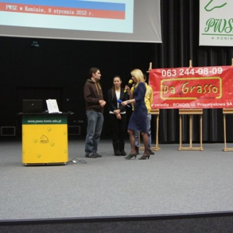 W przerwach między powyższymi prezentacjami rozegrano trzy konkursy dotyczące wiedzy na temat funkcjonowania Programu Erasmus, w których nagrody ufundowały dwie konińskie pizzerie: da Grasso oraz Vespa trattoria. Ponadto na scenie zaprezentowali się ze swoim programem artystycznym: Magdalena Mańka, Paulina Wawrzyniak oraz Michał Janczak.