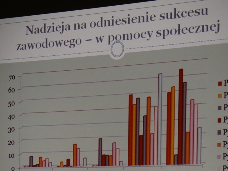 Autobiograficzny charakter miało wystąpienie Katarzyny Grabowskiej i Roberta Molki (referat pt. ,,Gdziekolwiek jestem – zawsze pomagam. Miejski Ośrodek Pomocy Rodzinie w Koninie szansą na rozwój osobisty i zawodowy’’). Prelegenci – absolwenci pracy socjalnej - przedstawili dwie różne perspektywy związane z karierą zawodową pracownika socjalnego. Kończący obrady referat pt. ,,Kariera zawodowa jako forma samoaktualizacji’’ wygłosiła dr Agata Malecha, która przedstawiła znaczenie pracy w zaspokajaniu wielorakich potrzeb człowieka.