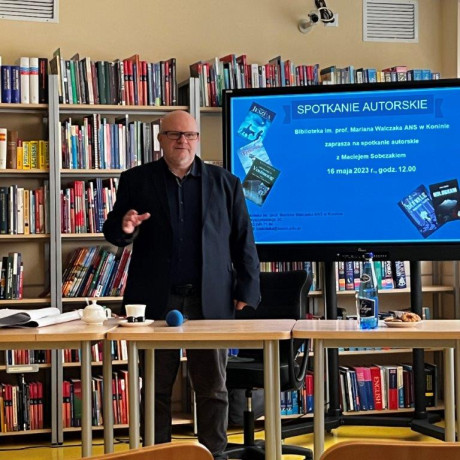 Napisał szesnaście książek (w tym dwie dla dzieci), kilka dramatów, a w szufladzie leży jeszcze niewydany tomik poezji — najwcześniejsze jego literackie dokonanie — mowa o Macieju Sobczaku, z którym nasza biblioteka zorganizowała spotkanie autorskie.
