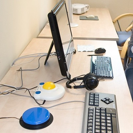 Podstawowym narzędziem pracy dla osób niepełnosprawnych ruchowo i słabo widzących jest komputer. Dzięki zastosowaniu specjalnych programów możliwe jest pisanie, czytanie, odbieranie i wysyłanie poczty, korzystanie z Internetu. Biblioteka Państwowej Wyższej Szkoły Zawodowej w Koninie utworzyła stanowisko komputerowe przeznaczone dla takich osób. Wyposażono je w dotykowy ekran z dostępem do Internetu, specjalną klawiaturę dla osób słabowidzących, odwróconą i powiększoną mysz komputerową Track Ball, specjalistyczne oprogramowanie powiększające obraz na ekranie, jak również specjalne biurko z możliwością regulacji wysokości.